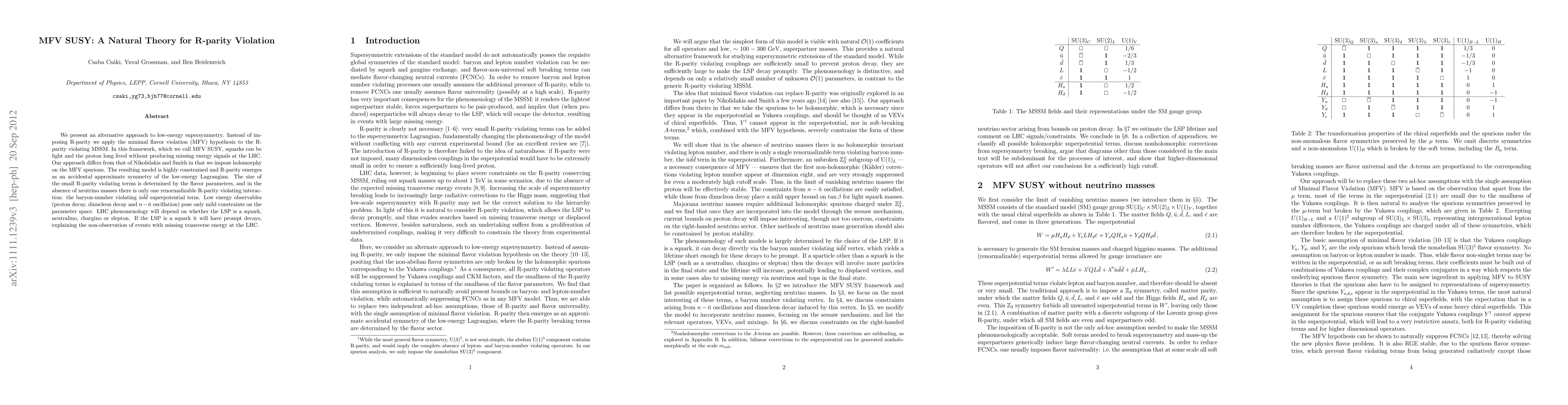 The paper introduces MFV SUSY, a framework that applies minimal flavor violation in a manifestly supersymmetric way, constraining baryon and lepton number violating amplitudes while allowing for a rapid LSP decay.