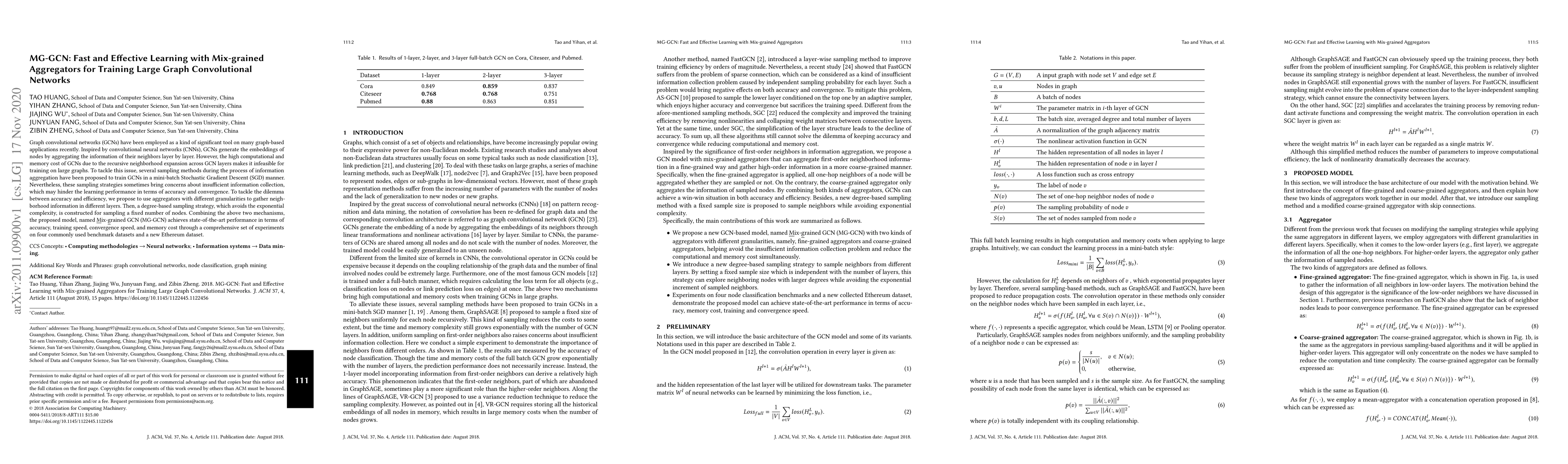 Graph convolutional networks (GCNs) have been employed as a kind of significant tool on many graph-based applications recently. Inspired by convolutional neural networks (CNNs), GCNs generate the embeddings of nodes by aggregating the information of their neighbors layer by layer. However, the high computational and memory cost of GCNs due to the recursive neighborhood expansion across GCN layers makes it infeasible for training on large graphs. To tackle this issue, several sampling methods during the process of information aggregation have been proposed to train GCNs in a mini-batch Stochastic Gradient Descent (SGD) manner. Nevertheless, these sampling strategies sometimes bring concerns about insufficient information collection, which may hinder the learning performance in terms of accuracy and convergence. To tackle the dilemma between accuracy and efficiency, we propose to use aggregators with different granularities to gather neighborhood information in different layers. Then, a degree-based sampling strategy, which avoids the exponential complexity, is constructed for sampling a fixed number of nodes. Combining the above two mechanisms, the proposed model, named Mix-grained GCN (MG-GCN) achieves state-of-the-art performance in terms of accuracy, training speed, convergence speed, and memory cost through a comprehensive set of experiments on four commonly used benchmark datasets and a new Ethereum dataset.
