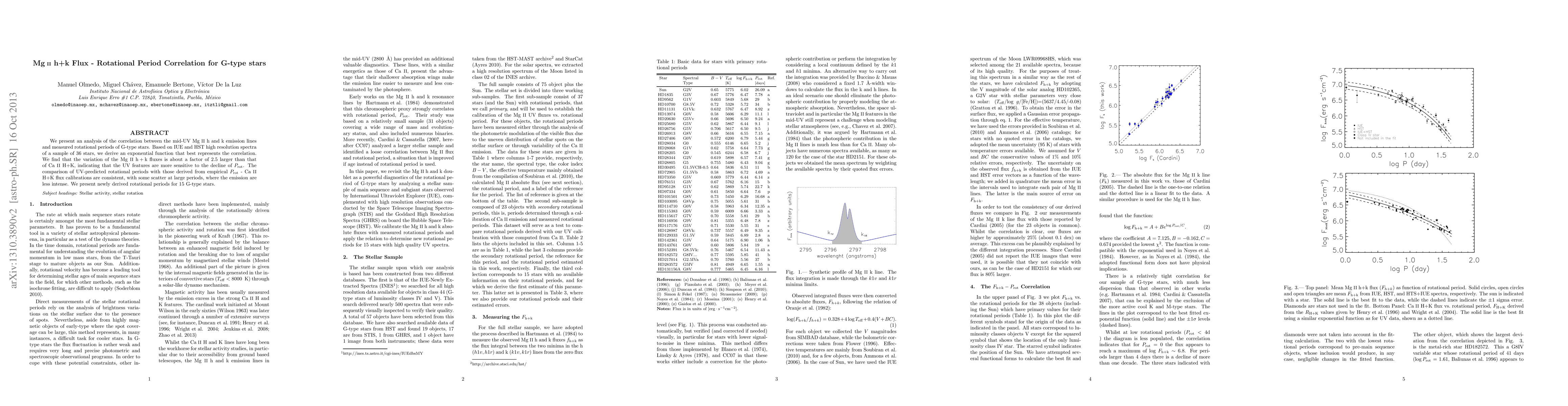 This study analyzes the correlation between mid-UV Mg II h+k emission lines and rotational periods of G-type stars, finding an exponential function that best fits the data. The Mg II h+k flux shows a greater sensitivity to rotational period decline compared to Ca II H+K, and newly derived rotational periods for 15 stars are consistent with empirical calibrations.