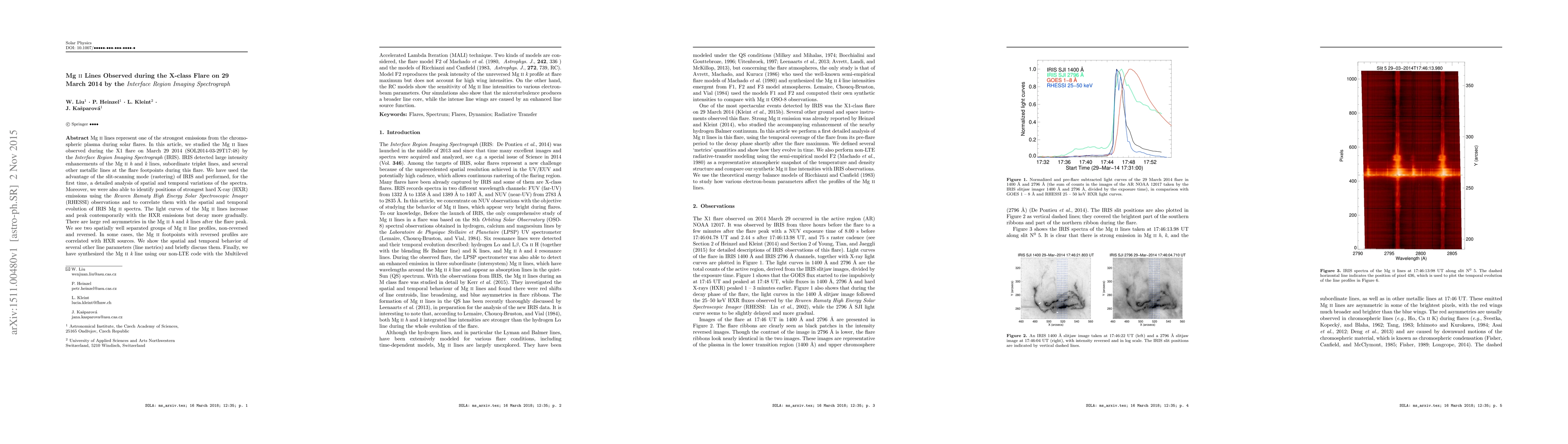 This study, using IRIS observations during the 2014 X1 solar flare, detailed Mg II line variations. It identified spatial and temporal changes in Mg II spectra, correlating them with HXR emissions. Large red asymmetries and two spatially distinct Mg II profile groups were noted. Model F2 reproduced peak intensity but not high wing intensities, while RC models showed Mg II sensitivity to electron-beam parameters. Microturbulence broadened the line core, and enhanced line source function caused intense wings.