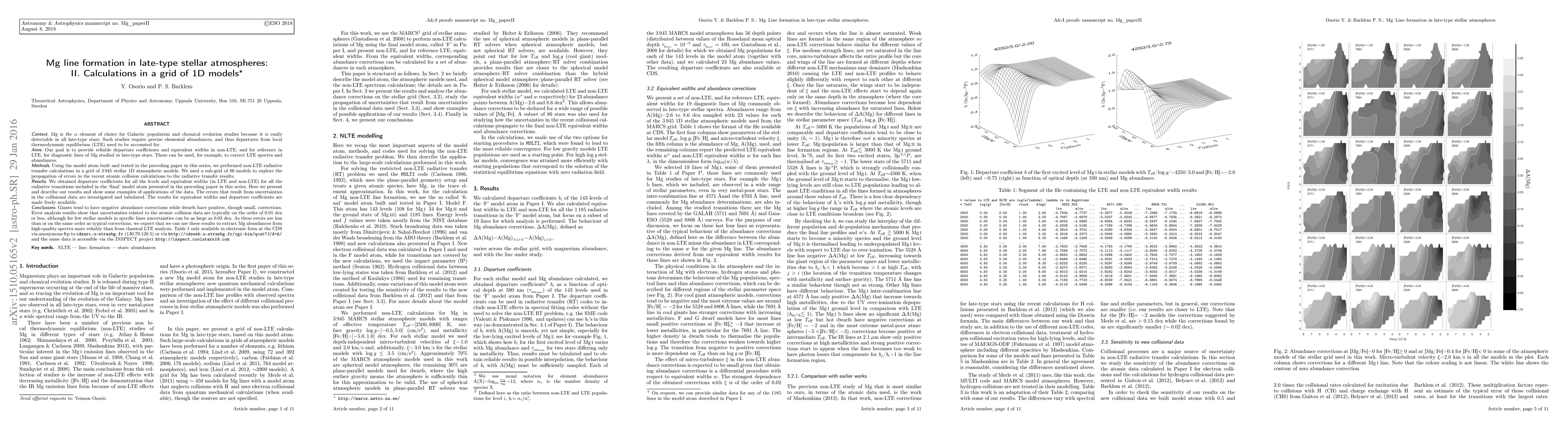 This paper presents non-LTE radiative transfer calculations for Mg line formation in late-type stellar atmospheres using a grid of 1D models. The study provides reliable departure coefficients and equivalent widths for Mg lines, which can correct LTE spectra and abundances, and reveals that errors from atomic collision data are typically small, allowing for more accurate Mg abundance extraction from high-quality spectra compared to classical LTE analysis.