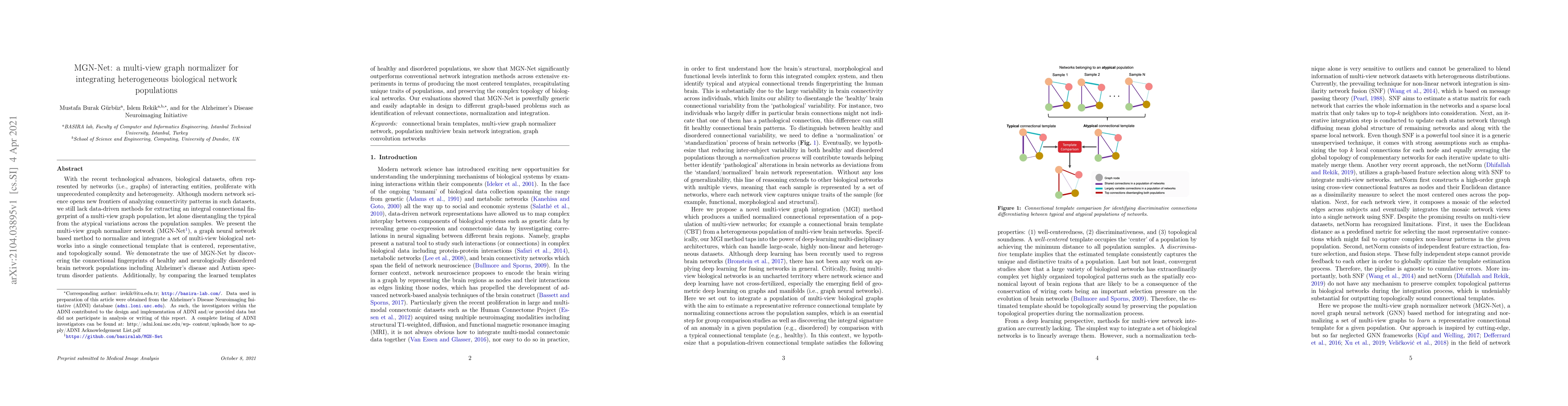 MGN-Net is a graph neural network designed to normalize and integrate multi-view biological networks into a representative connectional template. It outperforms conventional methods in producing centered templates and preserving complex network topology, demonstrated through analysis of brain networks in healthy and neurologically disordered populations.