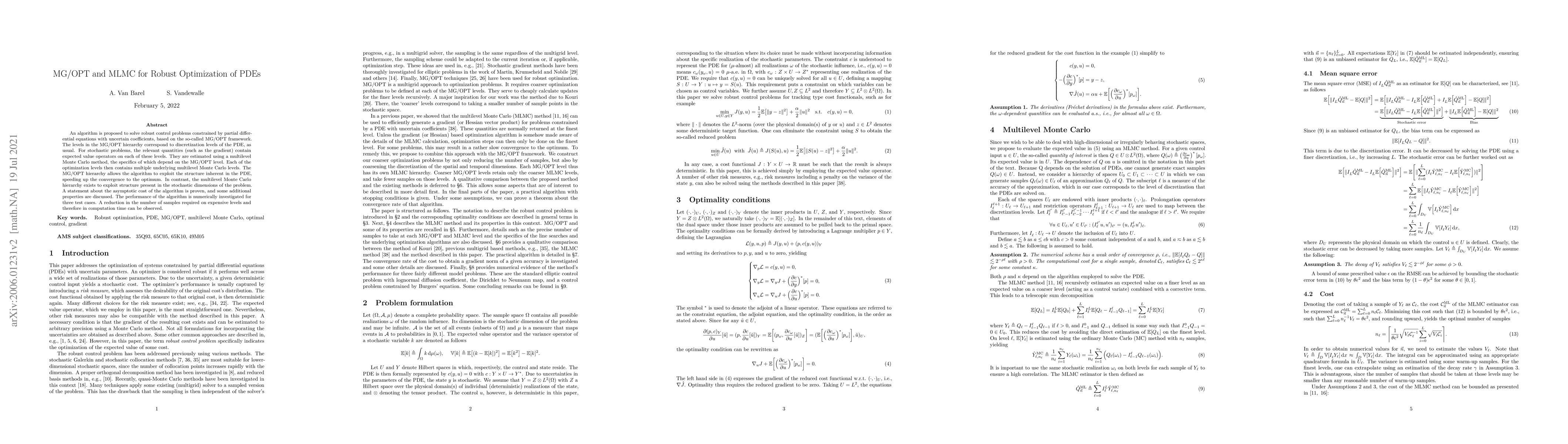 An algorithm is proposed to solve robust control problems constrained by partial differential equations with uncertain coefficients, based on the so-called MG/OPT framework. The levels in this MG/OPT hierarchy correspond to discretization levels of the PDE, as usual. For stochastic problems, the relevant quantities (such as the gradient) contain expected value operators on each of these levels. They are estimated using a multilevel Monte Carlo method, the specifics of which depend on the MG/OPT level. Each of the optimization levels then contains multiple underlying multilevel Monte Carlo levels. The MG/OPT hierarchy allows the algorithm to exploit the structure inherent in the PDE, speeding up the convergence to the optimum. In contrast, the multilevel Monte Carlo hierarchy exists to exploit structure present in the stochastic dimensions of the problem. A statement about the rate of convergence of the algorithm is proven, and some additional properties are discussed. The performance of the algorithm is numerically investigated for three test cases. A reduction in the number of samples required on expensive levels and therefore in computational time can be observed.