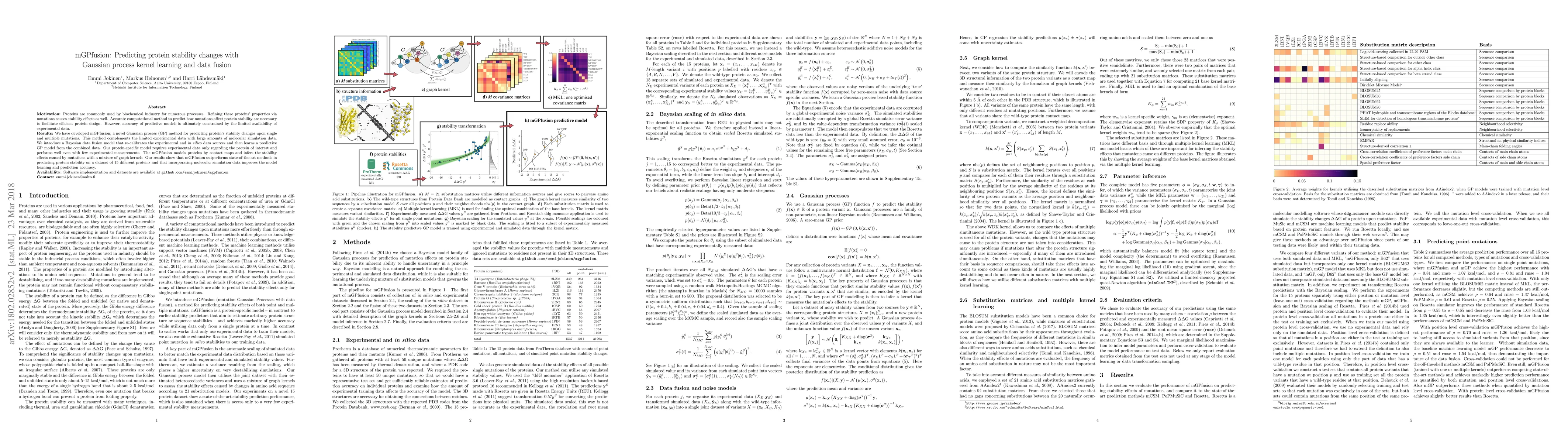 mGPfusion is a novel Gaussian process method that predicts protein stability changes due to mutations by combining experimental and molecular simulation data. It outperforms existing methods and requires minimal experimental data, leveraging contact maps and graph kernels for accurate predictions.