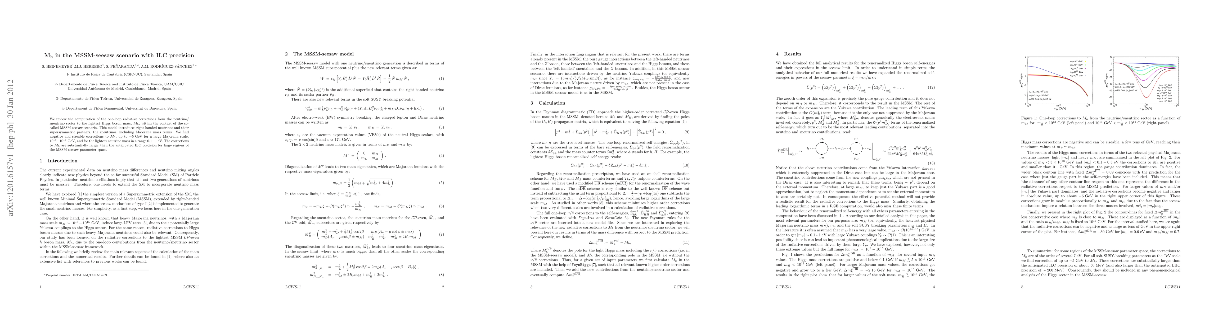 We review the computation of the one-loop radiative corrections from the neutrino/ sneutrino sector to the lightest Higgs boson mass, Mh, within the context of the so-called MSSM-seesaw scenario. This model introduces right handed neutrinos and their supersymmetric partners, the sneutrinos, including Majorana mass terms. We find negative and sizeable corrections to Mh, up to -5 GeV for a large Majorana scale, 10^{13}-10^{15} GeV, and for the lightest neutrino mass in a range 0.1-1 eV. The corrections to Mh are substantially larger than the anticipated ILC precision for large regions of the MSSM-seesaw parameter space.
