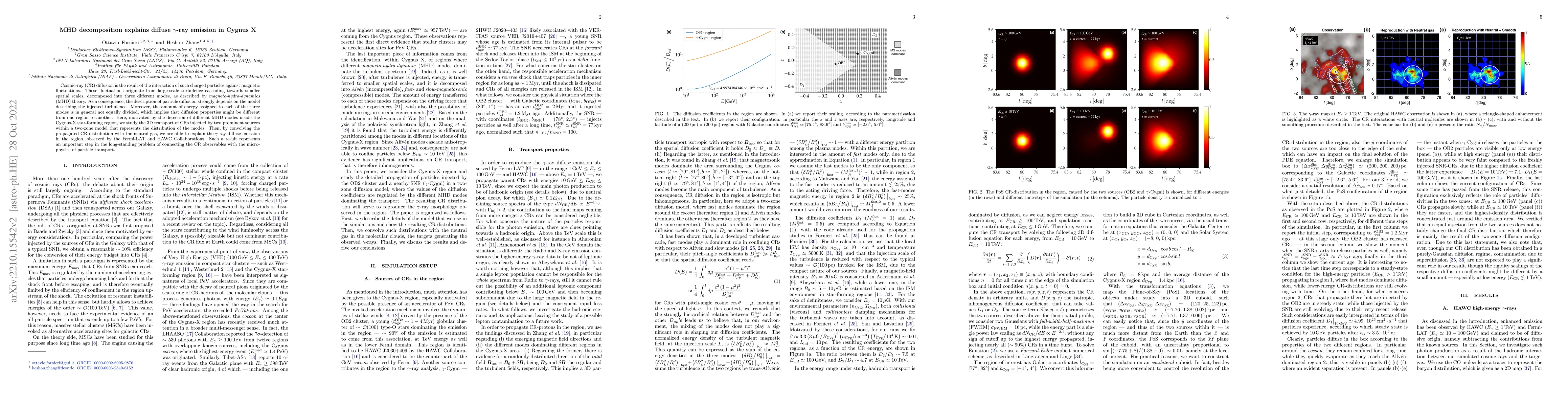 This paper uses MHD decomposition to explain the diffuse $\gamma$-ray emission in Cygnus X by modeling the 3D transport of cosmic rays from two prominent sources within a two-zone model, correlating the propagated CR distribution with the observed $\gamma$-ray emission from Fermi-LAT and HAWC. This approach provides a significant step towards understanding the micro-physics of particle transport.
