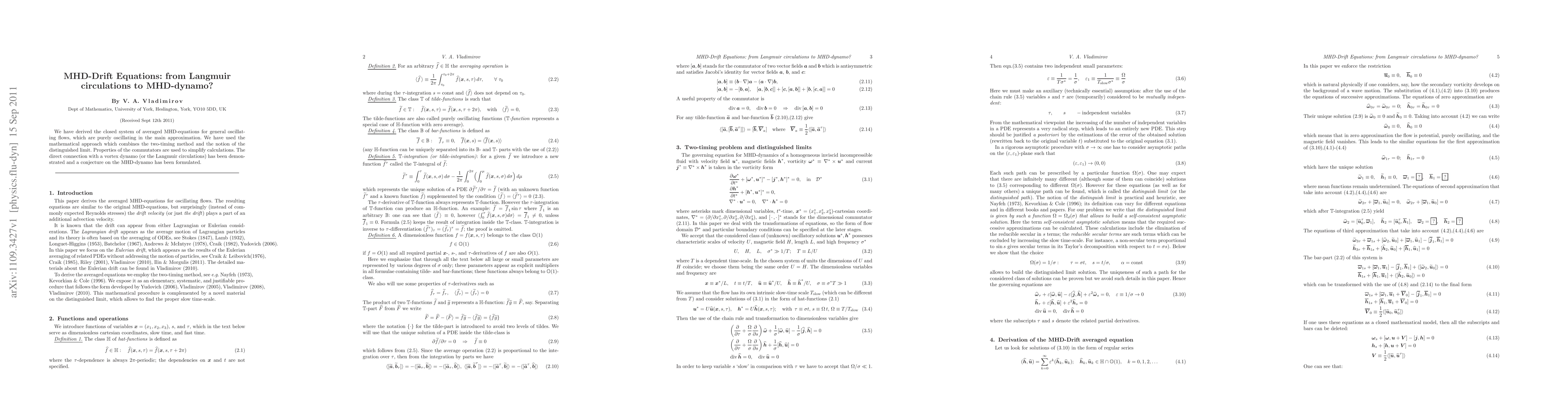 Researchers derived a system of MHD equations for oscillating flows, connecting Langmuir circulations to the MHD-dynamo, and proposed a conjecture on the role of magnetic fields in generating dynamo action.