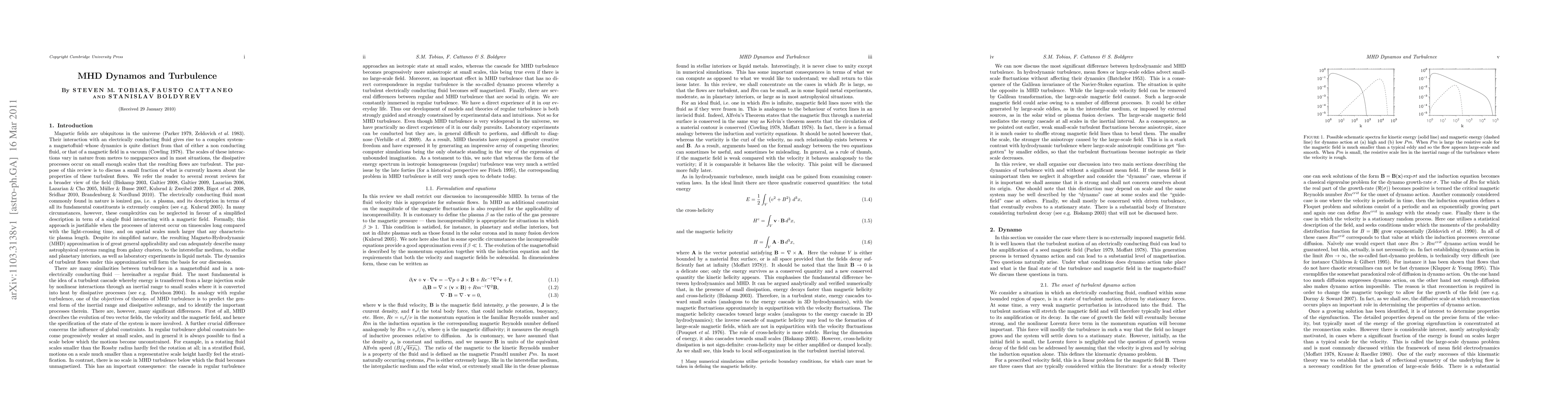 Summary: This paper reviews the mechanisms and dynamics of magnetohydrodynamic (MHD) dynamos and their role in generating and maintaining magnetic fields, alongside the turbulence that influences these processes. It explores both theoretical models and observational data to understand the complex interactions between magnetic fields and fluid motions.