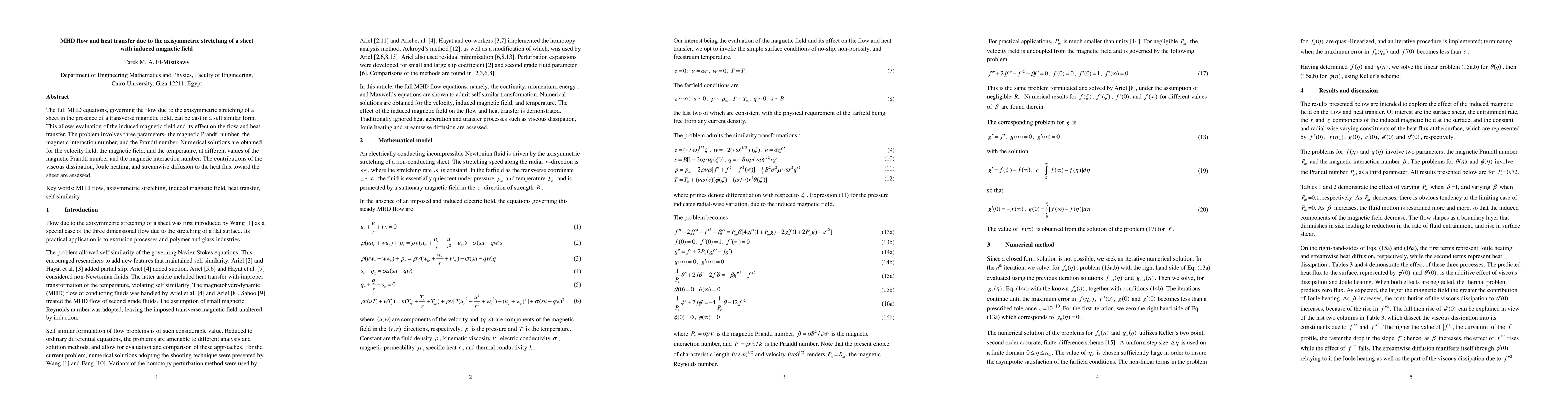 The full MHD equations, governing the flow due to the axisymmetric stretching of a sheet in the presence of a transverse magnetic field, can be cast in a self similar form. This allows evaluation of the induced magnetic field and its effect on the flow and heat transfer. The problem involves three parameters- the magnetic Prandtl number, the magnetic interaction number, and the Prandtl number. Numerical solutions are obtained for the velocity field, the magnetic field, and the temperature, at different values of the magnetic Prandtl number and the magnetic interaction number. The contributions of the viscous dissipation, Joule heating, and streamwise diffusion to the heat flux toward the sheet are assessed.