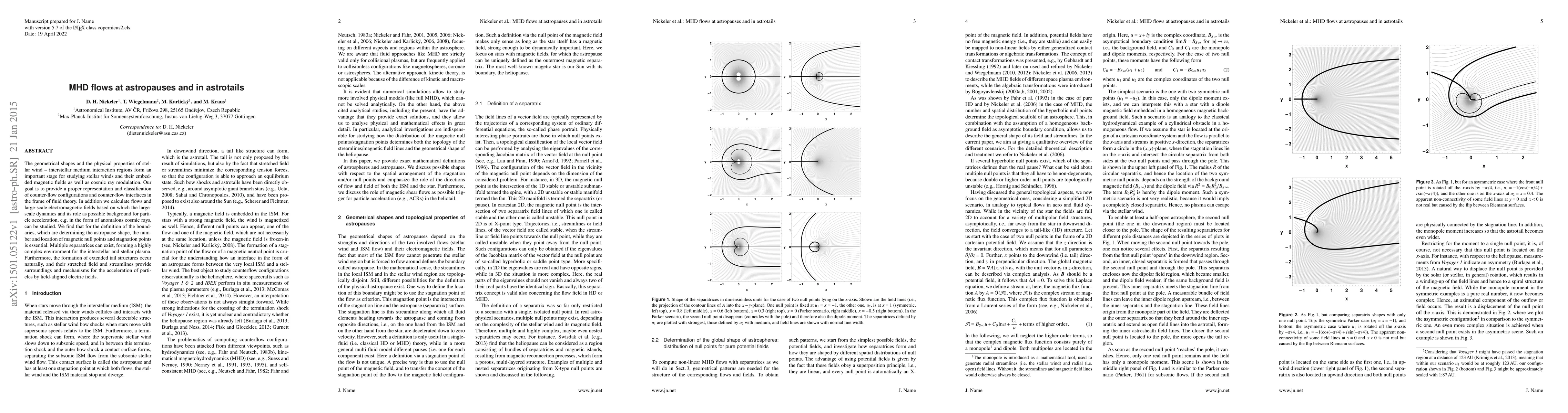 This paper investigates the dynamics of stellar wind interactions with the interstellar medium, focusing on the shapes and properties of astropauses and astrotails. It classifies counter-flow configurations and interfaces using fluid theory, revealing the importance of magnetic null points and separatrices in defining astropause boundaries and the role of extended tail structures in particle acceleration.