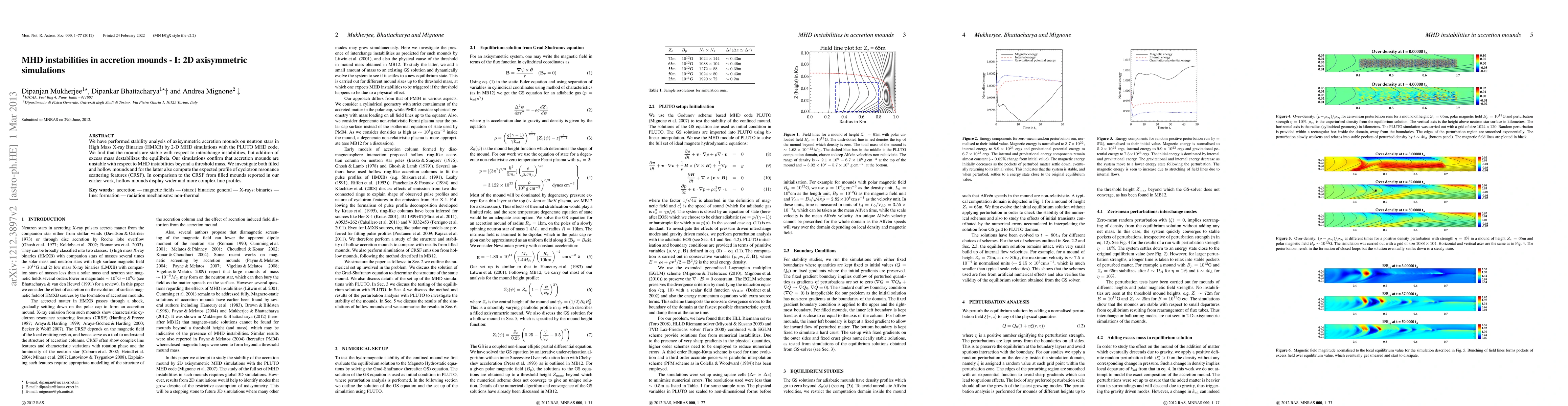Researchers used 2D simulations to study the stability of accretion mounds on neutron stars in HMXBs, finding they're stable but destabilized by excess mass; this confirms MHD instabilities beyond a threshold mass.