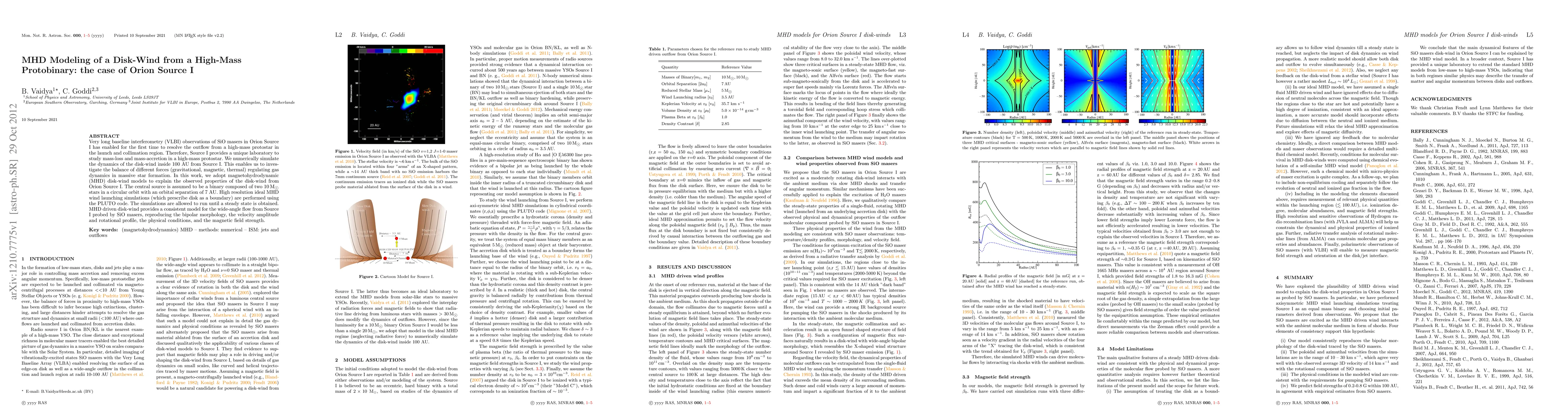 This paper uses magnetohydrodynamic (MHD) modeling to simulate the disk-wind dynamics around Orion Source I, a high-mass protobinary system. The MHD simulations reproduce observed properties of the disk-wind, including its bipolar morphology and velocity profile, suggesting a balance of gravitational, magnetic, and thermal forces in massive star formation.
