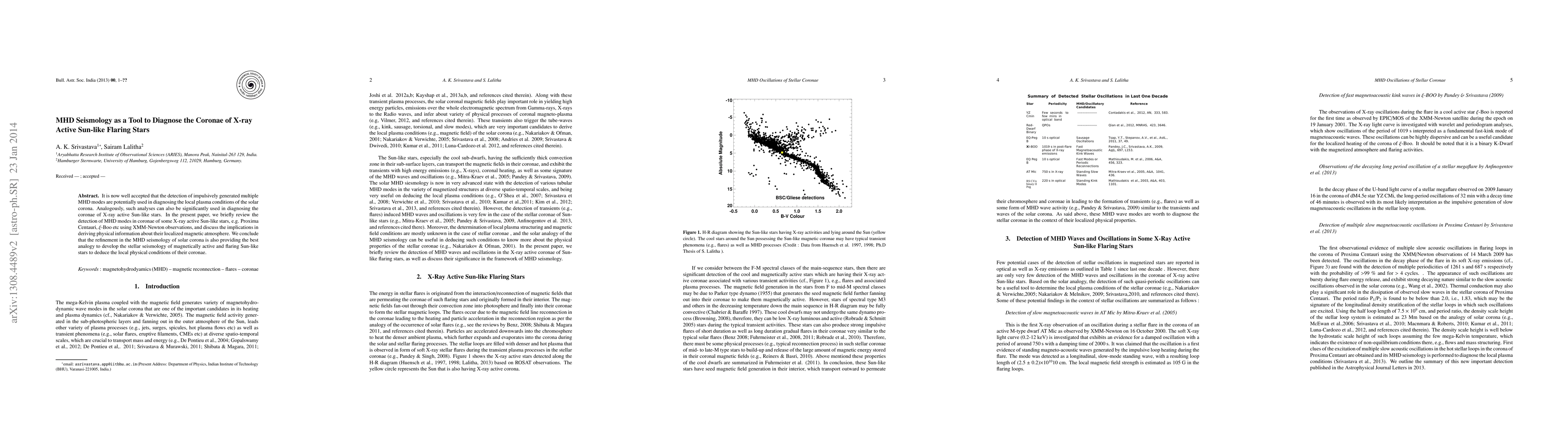 It is now well accepted that the detection of impulsively generated multiple MHD modes are potentially used in diagnosing the local plasma conditions of the solar corona. Analogously, such analyses can also be significantly used in diagnosing the coronae of X-ray active Sun-like stars. In the present paper, we briefly review the detection of MHD modes in coronae of some X-ray active Sun-like stars, e.g. Proxima Centauri, XI-Boo etc using XMM-Newton observations, and discuss the implications in deriving physical information about their localized magnetic atmosphere. We conclude that the refinement in the MHD seismology of solar corona is also providing the best analogy to develop the stellar seismology of magnetically active and flaring Sun-like stars to deduce the local physical conditions of their coronae.
