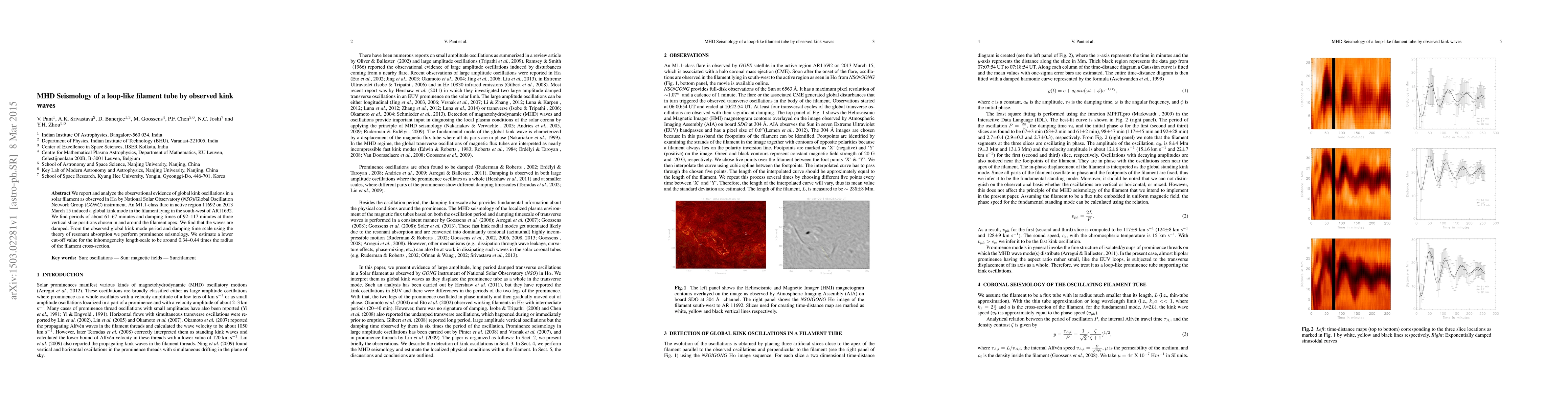 Scientists observed a global kink oscillation in a solar filament, finding periods of 61-67 minutes and damping times of 92-117 minutes, which helped estimate the inhomogeneity length-scale of the filament.
