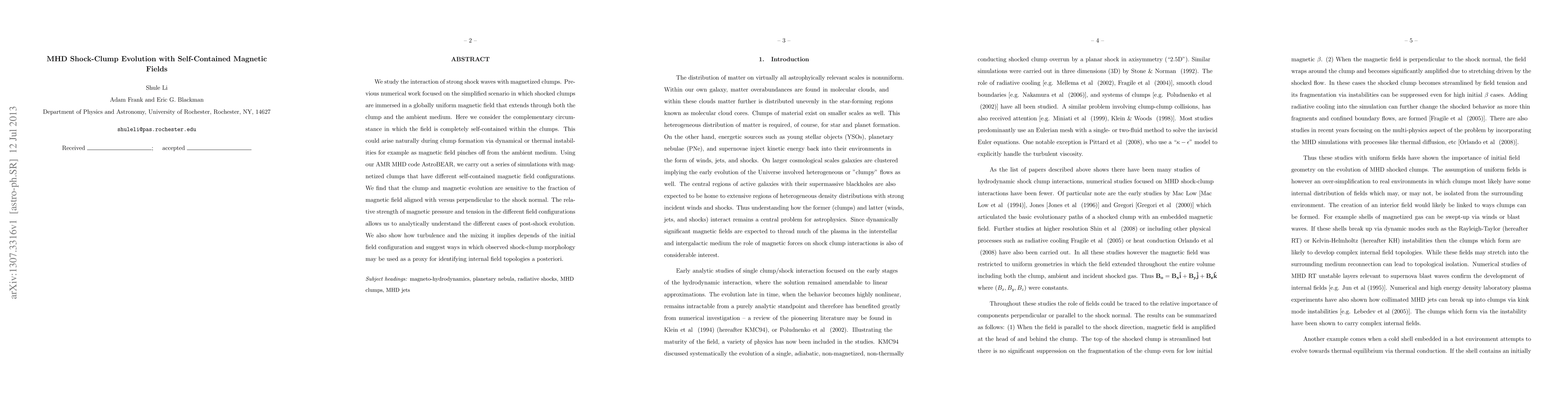 This paper investigates the dynamics of magnetized clumps interacting with strong shock waves, focusing on scenarios where magnetic fields are entirely self-contained within the clumps. Using advanced MHD simulations, the study reveals that the evolution of clumps and their magnetic fields depends significantly on the alignment of magnetic fields relative to the shock front, providing insights into post-shock turbulence and morphology.