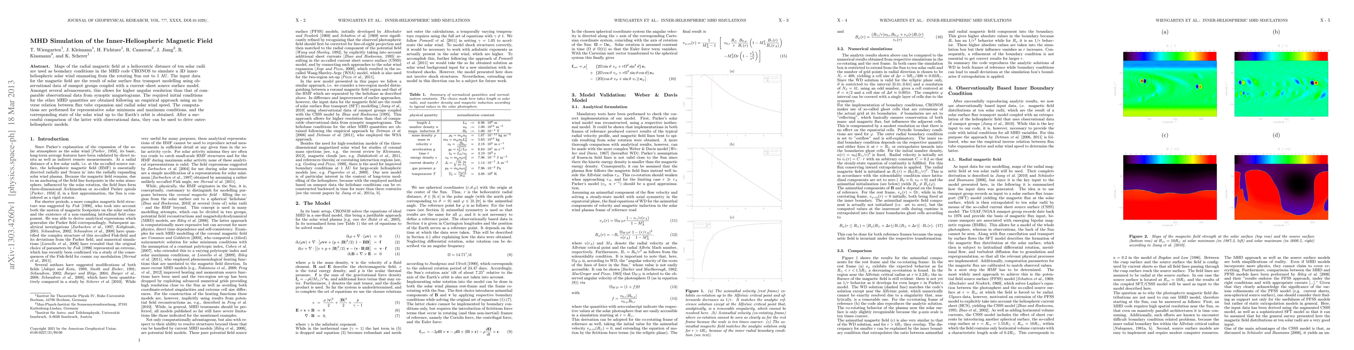 This paper uses the MHD code CRONOS to simulate the 3D inner-heliospheric solar wind and magnetic field from the Sun to 1 AU, employing advanced boundary conditions and empirical initial conditions. The results, validated against observational data, provide a higher angular resolution and can drive outer-heliospheric models.