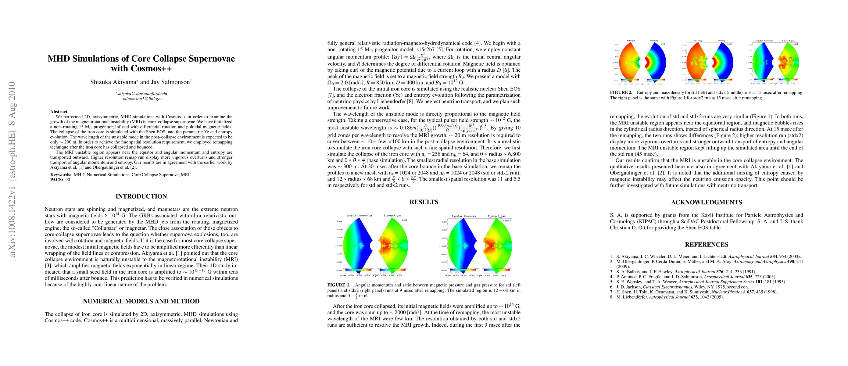 Researchers used computer simulations to study the growth of magnetic instability in supernovae, finding it affects angular momentum and entropy transport near the equator.