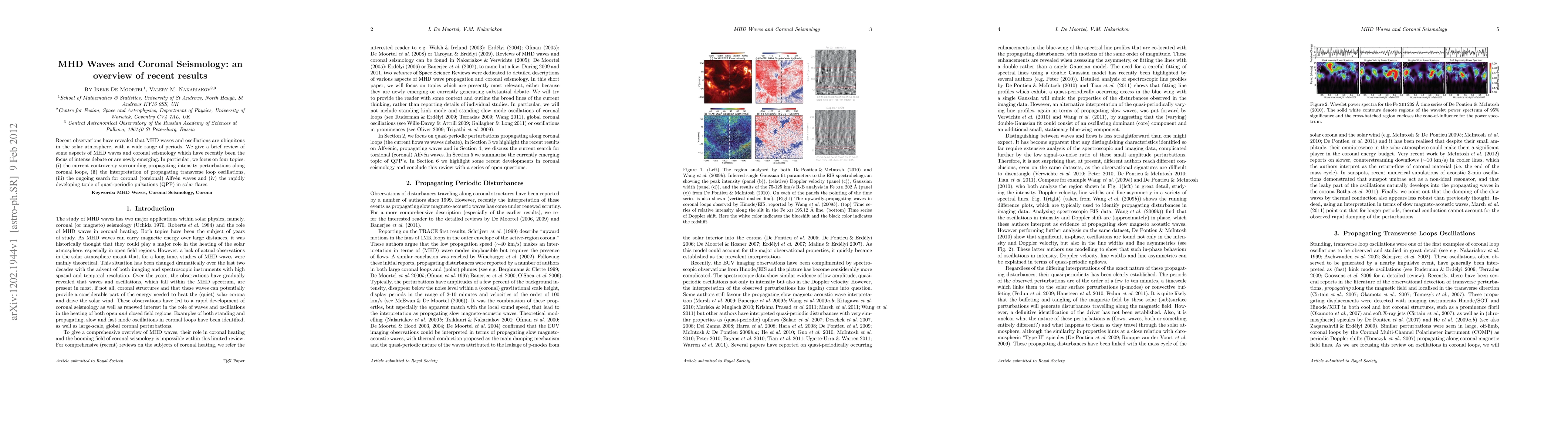 This paper reviews recent advances in MHD waves and coronal seismology, focusing on four key areas: debates over propagating intensity perturbations in coronal loops, interpretations of transverse loop oscillations, the search for coronal Alfven waves, and the emerging study of quasi-periodic pulsations in solar flares.