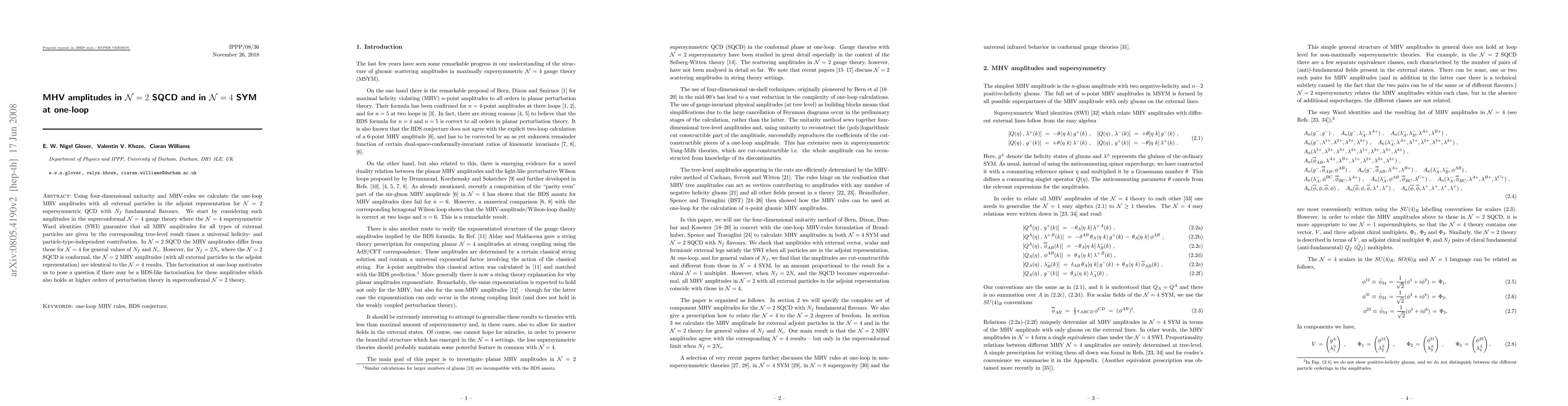 This paper calculates one-loop MHV amplitudes in N=2 SQCD and N=4 SYM, revealing that for N_f=2N_c, the N=2 results match the N=4 results, suggesting a potential BDS-like factorization at higher orders in superconformal N=2 theory.