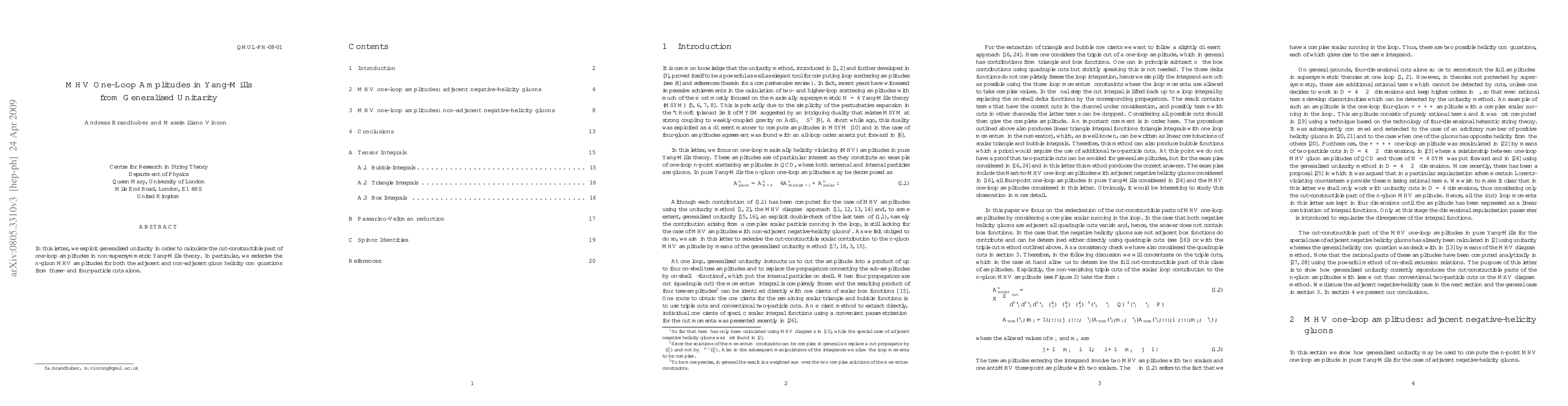 This paper uses generalised unitarity to compute the cut-constructible part of one-loop amplitudes in non-supersymmetric Yang-Mills theory, specifically deriving n-gluon MHV amplitudes for both adjacent and non-adjacent gluon helicity configurations through 3- and 4-particle cuts.