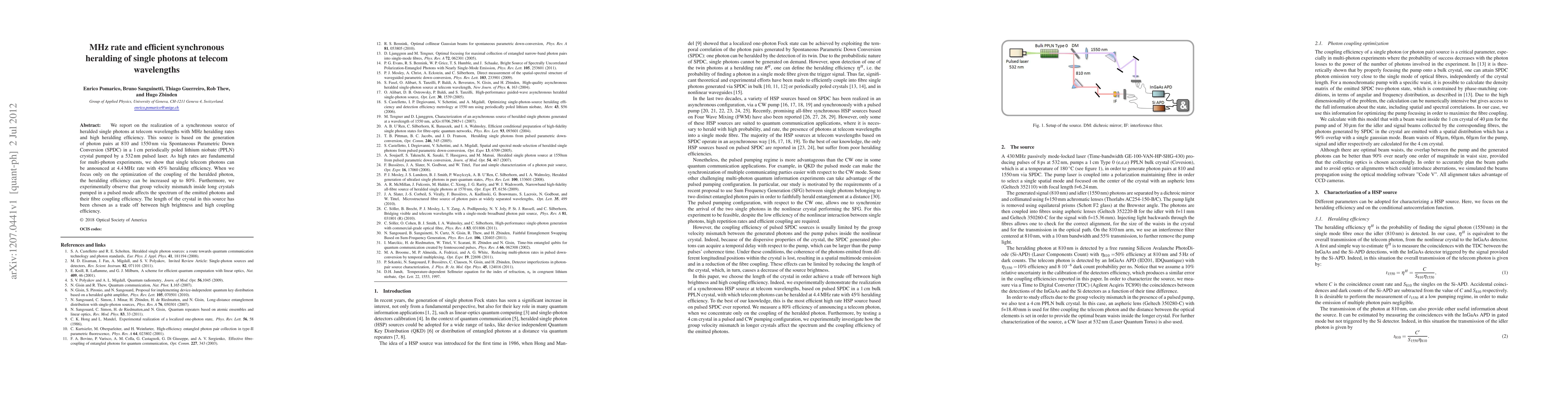 This paper presents a highly efficient synchronous source of heralded single photons at telecom wavelengths, achieving MHz rates and up to 80% heralding efficiency through SPDC in a PPLN crystal. The study also investigates the impact of group velocity mismatch on photon spectrum and coupling efficiency.