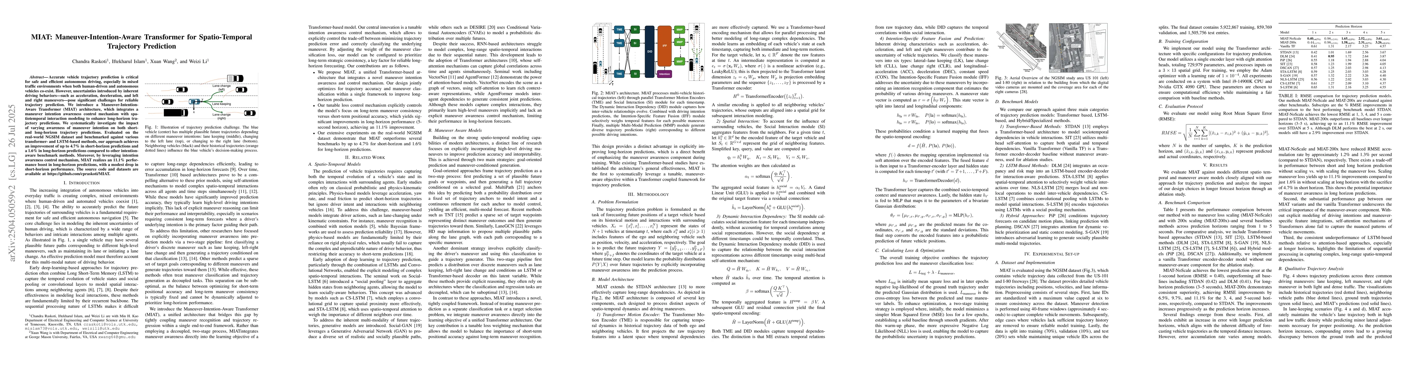 Accurate vehicle trajectory prediction is critical for safe and efficient autonomous driving, especially in mixed traffic environments when both human-driven and autonomous vehicles co-exist. However, uncertainties introduced by inherent driving behaviors -- such as acceleration, deceleration, and left and right maneuvers -- pose significant challenges for reliable trajectory prediction. We introduce a Maneuver-Intention-Aware Transformer (MIAT) architecture, which integrates a maneuver intention awareness control mechanism with spatiotemporal interaction modeling to enhance long-horizon trajectory predictions. We systematically investigate the impact of varying awareness of maneuver intention on both short- and long-horizon trajectory predictions. Evaluated on the real-world NGSIM dataset and benchmarked against various transformer- and LSTM-based methods, our approach achieves an improvement of up to 4.7% in short-horizon predictions and a 1.6% in long-horizon predictions compared to other intention-aware benchmark methods. Moreover, by leveraging intention awareness control mechanism, MIAT realizes an 11.1% performance boost in long-horizon predictions, with a modest drop in short-horizon performance. The source code and datasets are available at https://github.com/cpraskoti/MIAT.