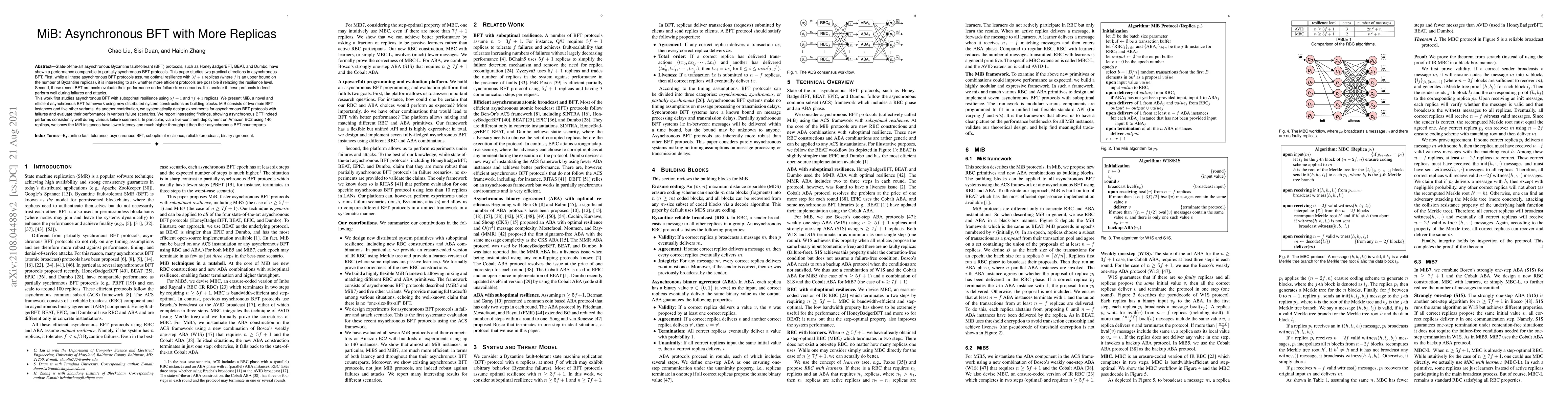 This paper introduces MiB, an efficient asynchronous Byzantine fault-tolerant (BFT) framework using more replicas than traditional protocols. It evaluates MiB's performance under failure scenarios, demonstrating lower latency and higher throughput compared to existing asynchronous BFT protocols.