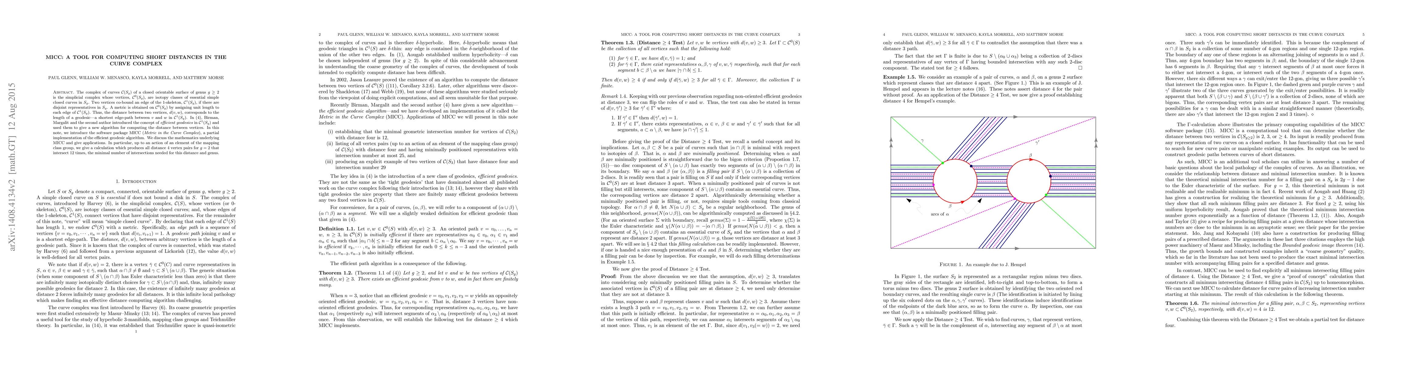 The complex of curves $\mathcal{C}(S_g)$ of a closed orientable surface of genus $g \geq 2$ is the simplicial complex having its vertices, $\mathcal{C}^0(S_g)$, are isotopy classes of essential curves in $S_g$. Two vertices co-bound an edge of the $1$-skeleton, $\mathcal{C}^1(S_g)$, if there are disjoint representatives in $S_g$. A metric is obtained on $\mathcal{C}^0(S_g)$ by assigning unit length to each edge of $\mathcal{C}^1(S_g)$. Thus, the distance between two vertices, $d(v,w)$, corresponds to the length of a geodesic---a shortest edge-path between $v$ and $w$ in $\mathcal{C}^1 (S_g)$. Recently, Birman, Margalit and the second author introduced the concept of {\em initially efficient geodesics} in $\mathcal{C}^1(S_g)$ and used them to give a new algorithm for computing the distance between vertices. In this note we introduce the software package MICC ({\em Metric in the Curve Complex}), a partial implementation of the initially efficient geodesic algorithm. We discuss the mathematics underlying MICC and give applications. In particular, we give examples of distance four vertex pairs, for $g=2$ and 3. Previously, there was only one known example, in genus $2$, due to John Hempel.
