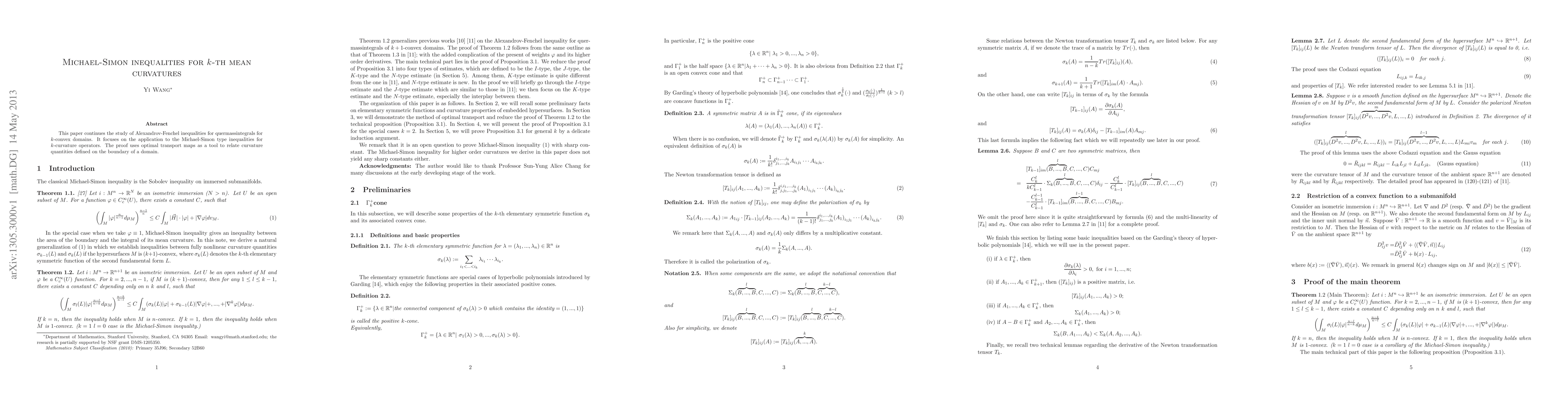 Summary: The paper explores Michael-Simon inequalities in the context of $k$-convex domains, applying Alexandrov-Fenchel inequalities to $k$-curvature operators, and employs optimal transport maps to connect boundary curvature quantities.