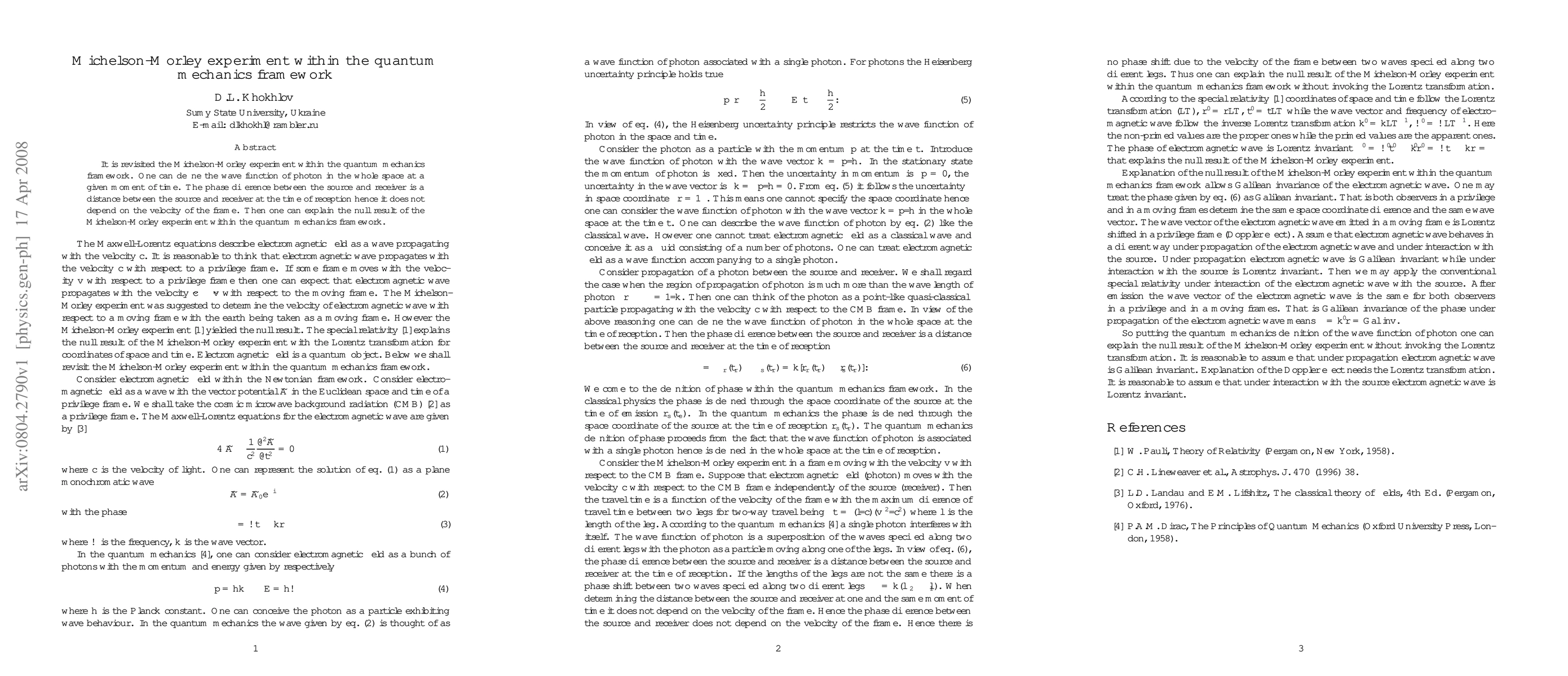 This paper revisits the Michelson-Morley experiment using quantum mechanics, defining the photon's wave function in space, and explains the null result by showing that the phase difference depends on the distance, not the frame velocity.