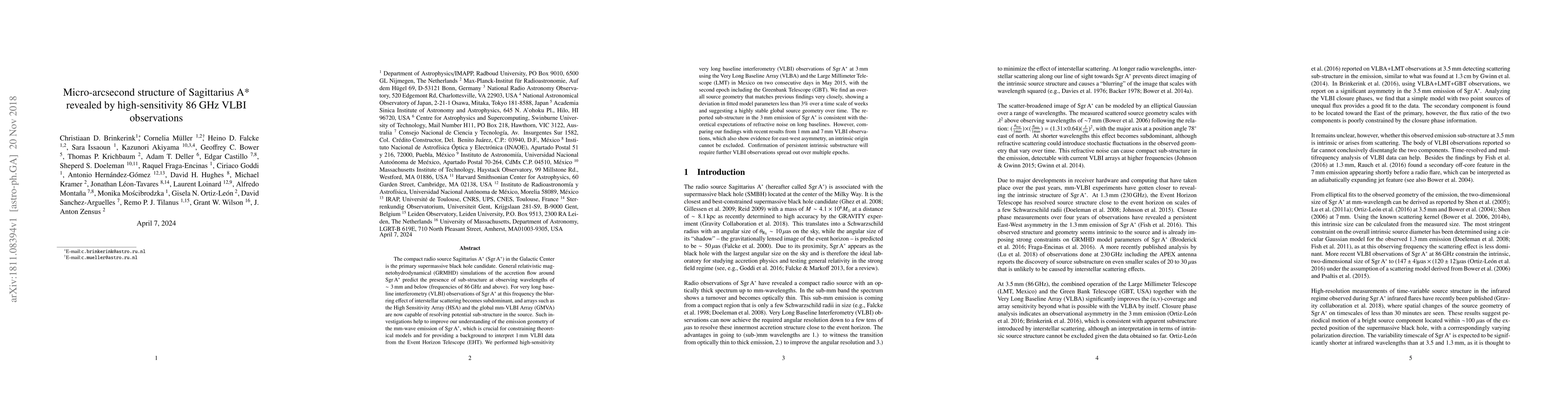 Researchers used high-sensitivity VLBI observations to reveal a micro-arcsecond structure in Sagittarius A*, confirming theoretical predictions of substructure at high frequencies, but finding no conclusive evidence for an intrinsic origin.