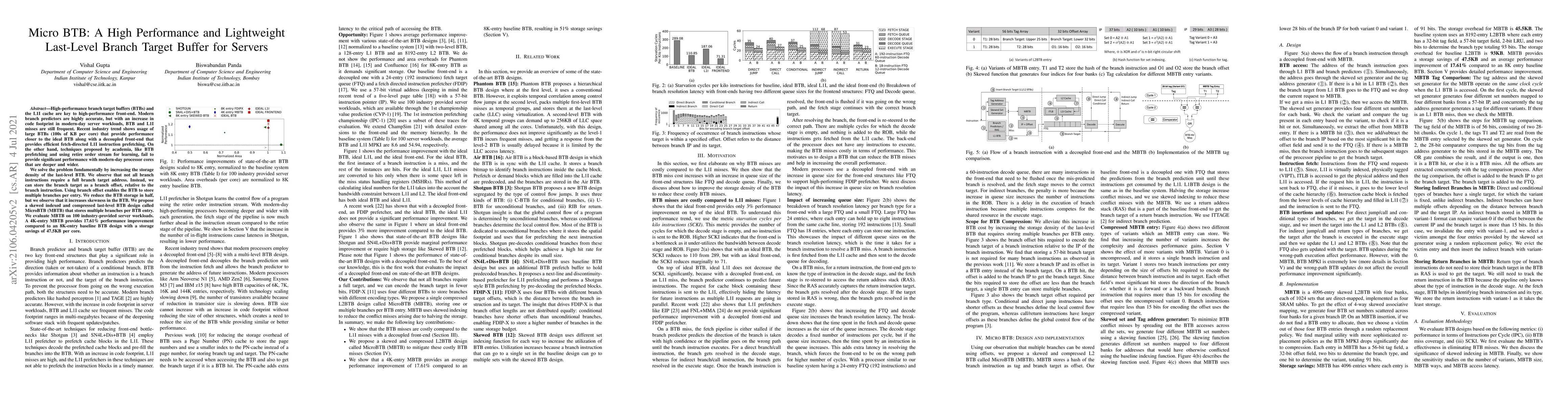 Researchers developed Micro BTB, a high-performance and lightweight last-level branch target buffer that stores branches as offsets, improving server performance by 17.61% while reducing storage by 47.5KB per core.