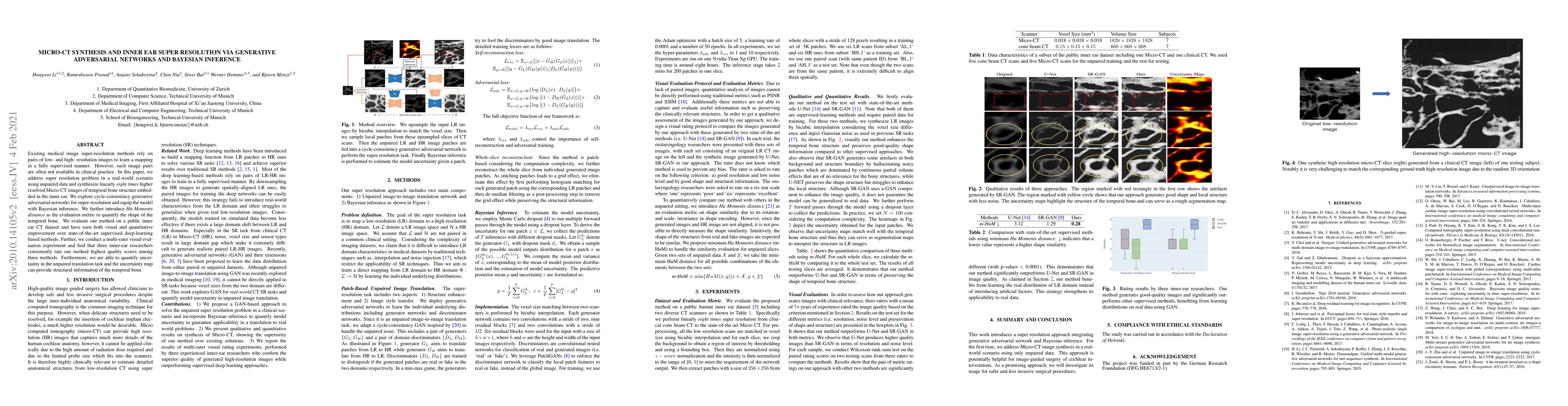 This paper proposes a method for super-resolving Micro-CT images of the inner ear using unpaired data, employing generative adversarial networks and Bayesian inference. The approach synthesizes eight times higher resolution images and shows improved visual and quantitative results compared to existing methods.