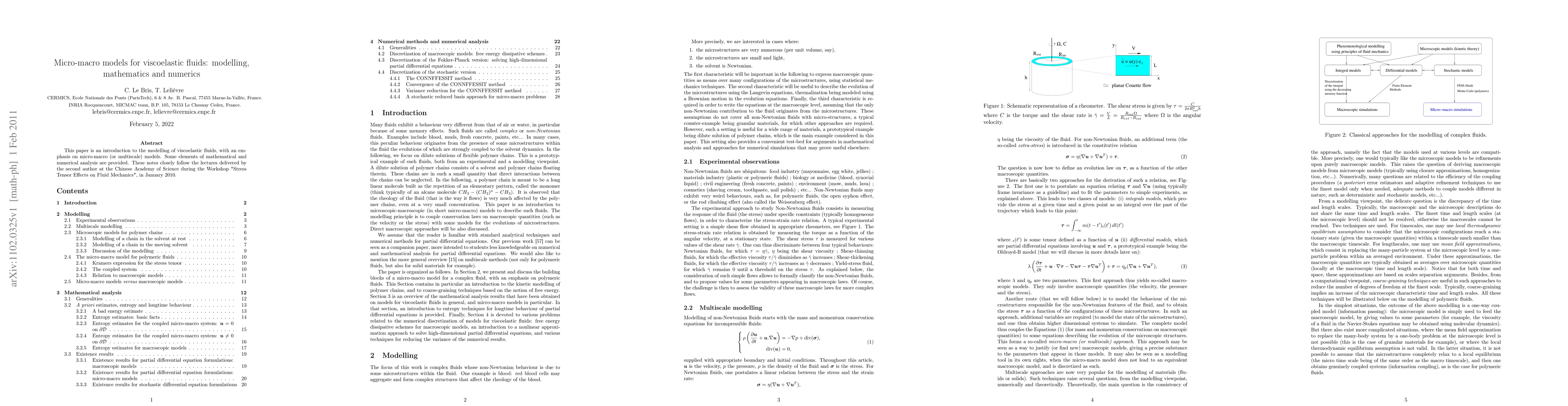 This paper introduces the modelling of viscoelastic fluids using micro-macro models, emphasizing mathematical and numerical analysis. It follows lectures from a 2010 workshop on fluid mechanics at the Chinese Academy of Science.