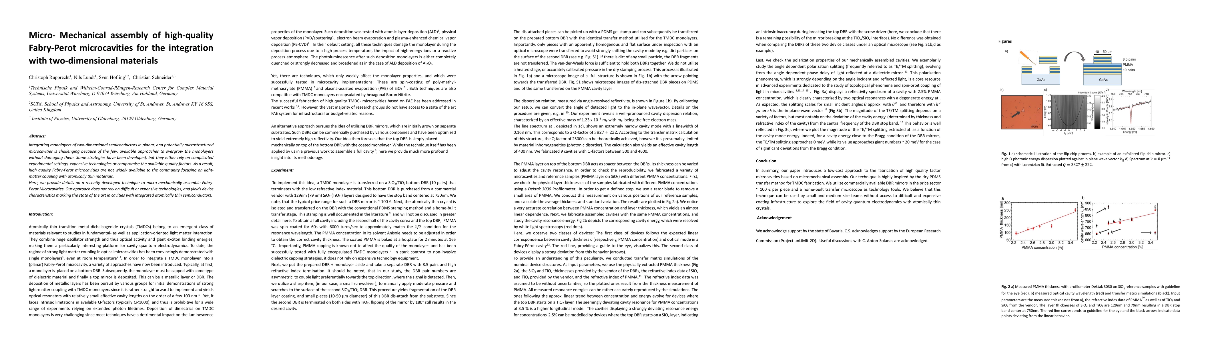 This paper details a novel micro-mechanical technique for assembling high-quality Fabry-Perot microcavities that integrate monolayers of two-dimensional semiconductors without damaging them, offering a cost-effective and straightforward alternative to existing methods. The proposed approach achieves state-of-the-art device characteristics for light-matter coupling with atomically thin materials.