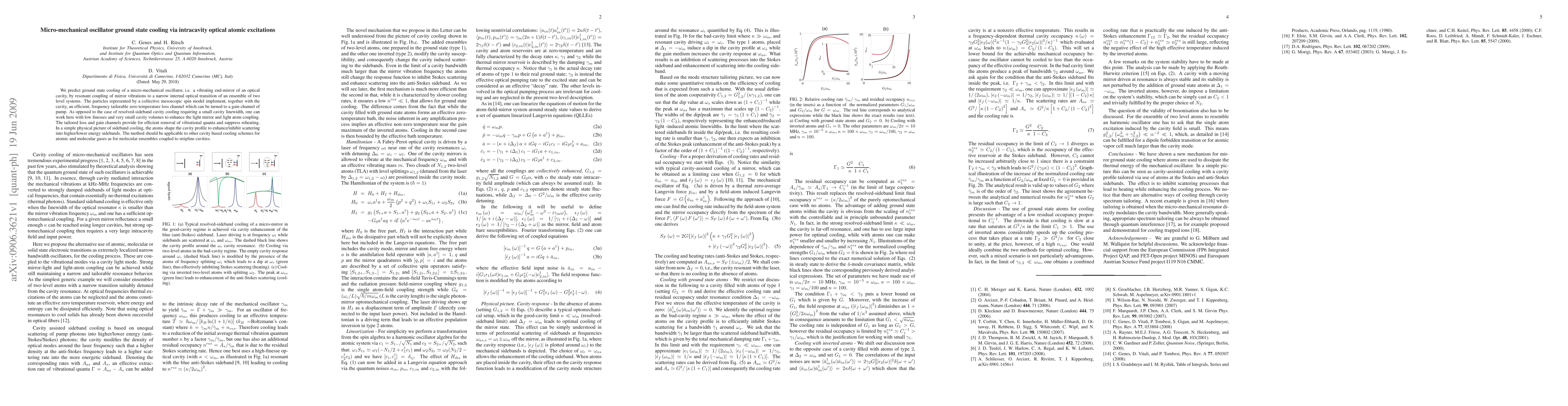 We predict ground state cooling of a micro-mechanical oscillator, i.e. a vibrating end-mirror of an optical cavity, by resonant coupling of mirror vibrations to a narrow internal optical transition of an ensemble of two level systems. The particles represented by a collective mesoscopic spin model implement, together with the cavity, an efficient, frequency tailorable zero temperature loss channel which can be turned to a gain channel of pump. As opposed to the case of resolved-sideband cavity cooling requiring a small cavity linewidth, one can work here with low finesses and very small cavity volumes to enhance the light mirror and light atom coupling. The tailored loss and gain channels provide for efficient removal of vibrational quanta and suppress reheating. In a simple physical picture of sideband cooling, the atoms shape the cavity profile to enhance/inhibit scattering into higher/lower energy sidebands. The method should be applicable to other cavity based cooling schemes for atomic and molecular gases as for molecular ensembles coupled to stripline cavities.