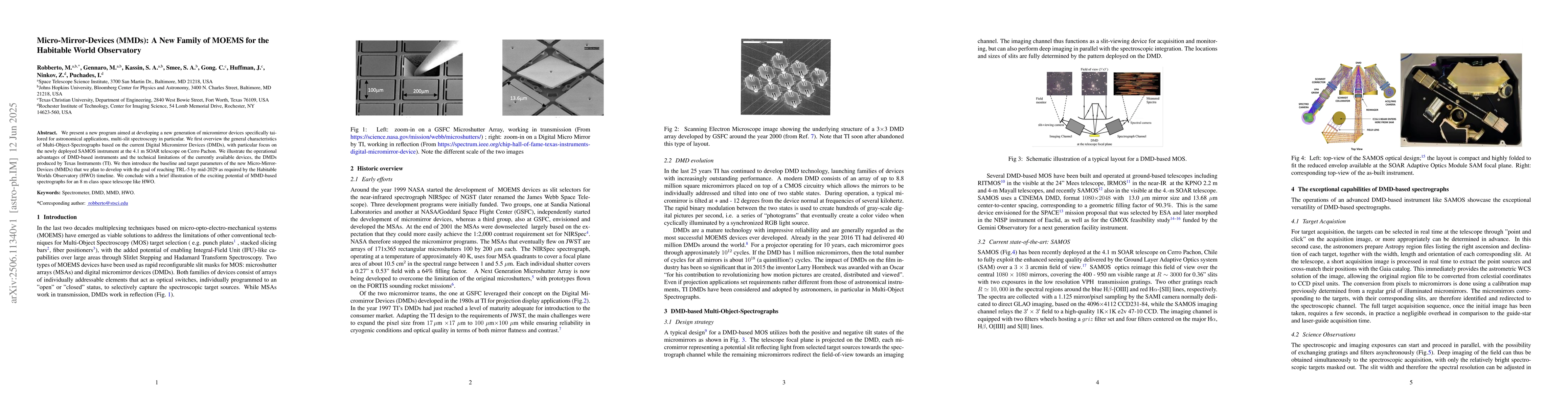 We present a new program aimed at developing a new generation of micromirror devices specifically tailored for astronomical applications, multi-slit spectroscopy in particular. We first overview the general characteristics of Multi-Object-Spectrographs based on the current Digital Micromirror Devices (DMDs), with particular focus on the newly deployed SAMOS instrument at the 4.1 m SOAR telescope on Cerro Pachon. We illustrate the operational advantages of DMD-based instruments and the technical limitations of the currently available devices, the DMDs produced by Texas Instruments (TI). We then introduce the baseline and target parameters of the new Micro-Mirror-Devices (MMDs) that we plan to develop with the goal of reaching TRL-5 by mid-2029 as required by the Habitable Worlds Observatory (HWO) timeline. We conclude with a brief illustration of the exciting potential of MMD-based spectrographs for an 8 m class space telescope like HWO.