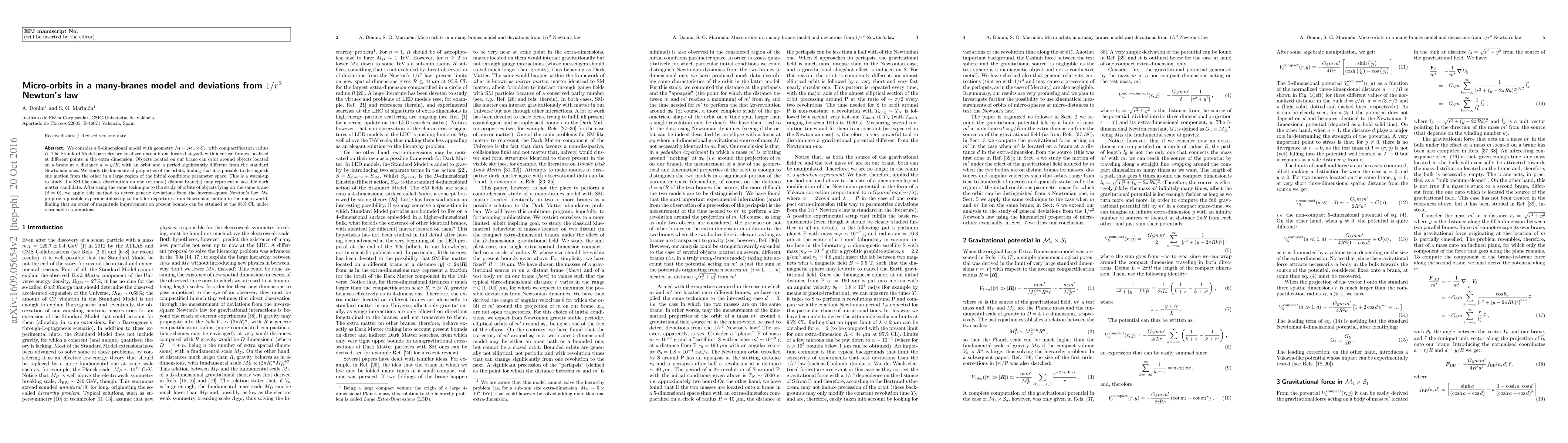 Researchers explore micro-orbits in a many-branes model, finding distinct motions from Newtonian law and proposing an experimental setup to detect deviations.