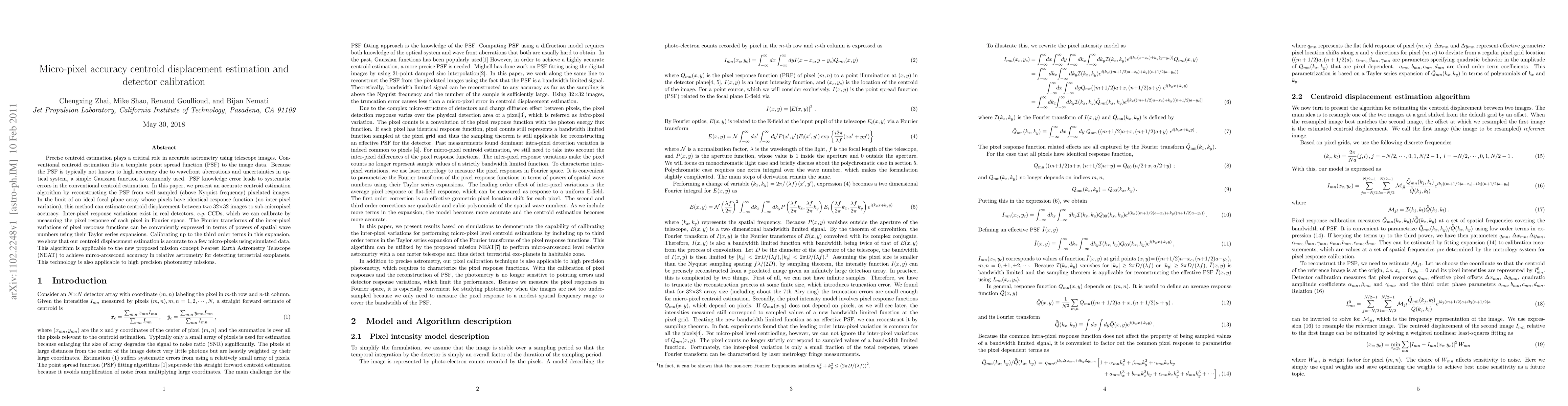 This paper introduces an advanced centroid estimation algorithm that reconstructs the point spread function (PSF) from pixelated images to achieve sub-micropixel accuracy in astrometry. It also presents a method to calibrate inter-pixel response variations in detectors, improving the precision of centroid displacement estimation for applications like the Nearest Earth Astrometry Telescope (NEAT).