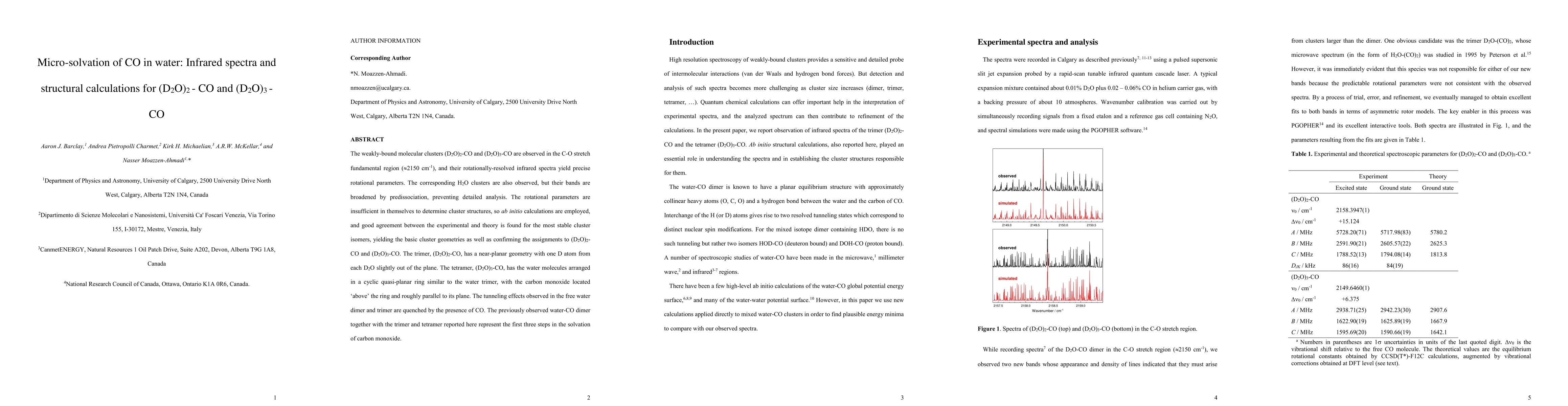 The weakly-bound molecular clusters (D2O)2-CO and (D2O)3-CO are observed in the C-O stretch fundamental region (~2150 cm-1), and their rotationally-resolved infrared spectra yield precise rotational parameters. The corresponding H2O clusters are also observed, but their bands are broadened by predissociation, preventing detailed analysis. The rotational parameters are insufficient in themselves to determine cluster structures, so ab initio calculations are employed, and good agreement between the experimental and theory is found for the most stable cluster isomers, yielding the basic cluster geometries as well as confirming the assignments to (D2O)2-CO and (D2O)3-CO. The trimer, (D2O)2-CO, has a near-planar geometry with one D atom from each D2O slightly out of the plane. The tetramer, (D2O)3-CO, has the water molecules arranged in a cyclic quasi-planar ring similar to the water trimer, with the carbon monoxide located 'above' the ring and roughly parallel to its plane. The tunneling effects observed in the free water dimer and trimer are quenched by the presence of CO. The previously observed water-CO dimer together with the trimer and tetramer reported here represent the first three steps in the solvation of carbon monoxide.