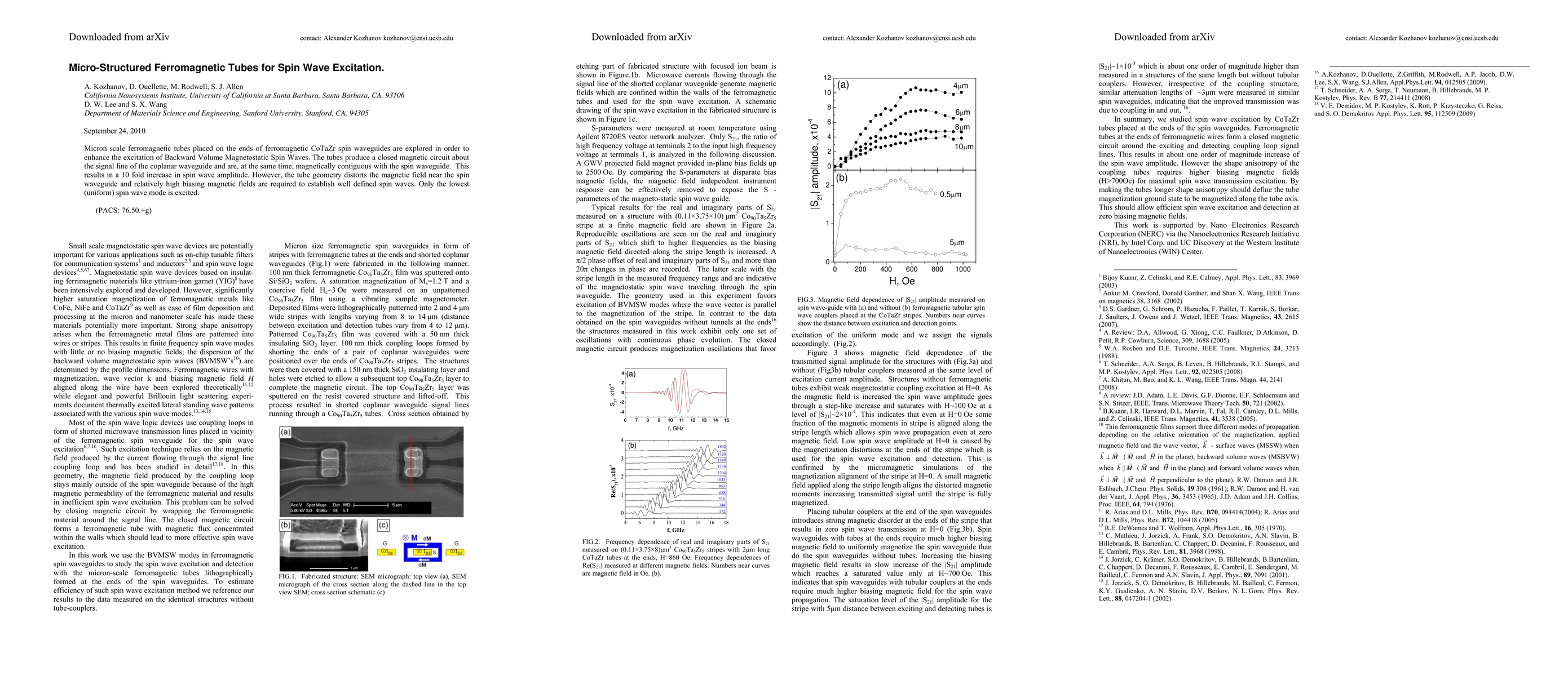 Micron scale ferromagnetic tubes placed on the ends of ferromagnetic CoTaZr spin waveguides are explored in order to enhance the excitation of Backward Volume Magnetostatic Spin Waves. The tubes produce a closed magnetic circuit about the signal line of the coplanar waveguide and are, at the same time, magnetically contiguous with the spin waveguide. This results in a 10 fold increase in spin wave amplitude. However, the tube geometry distorts the magnetic field near the spin waveguide and relatively high biasing magnetic fields are required to establish well defined spin waves. Only the lowest (uniform) spin wave mode is excited.
