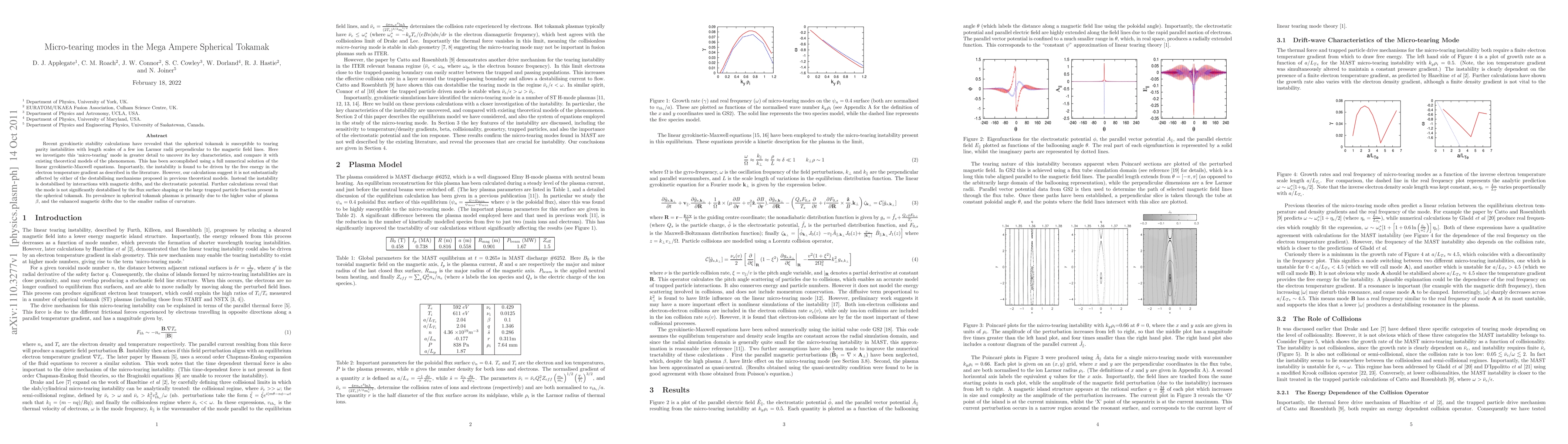 This paper investigates 'micro-tearing' instabilities in the Mega Ampere Spherical Tokamak, revealing that they are driven by electron temperature gradients and destabilized by magnetic drifts and electrostatic potential. Contrary to previous models, these instabilities are not significantly influenced by flux surface shaping or trapped particle fractions.