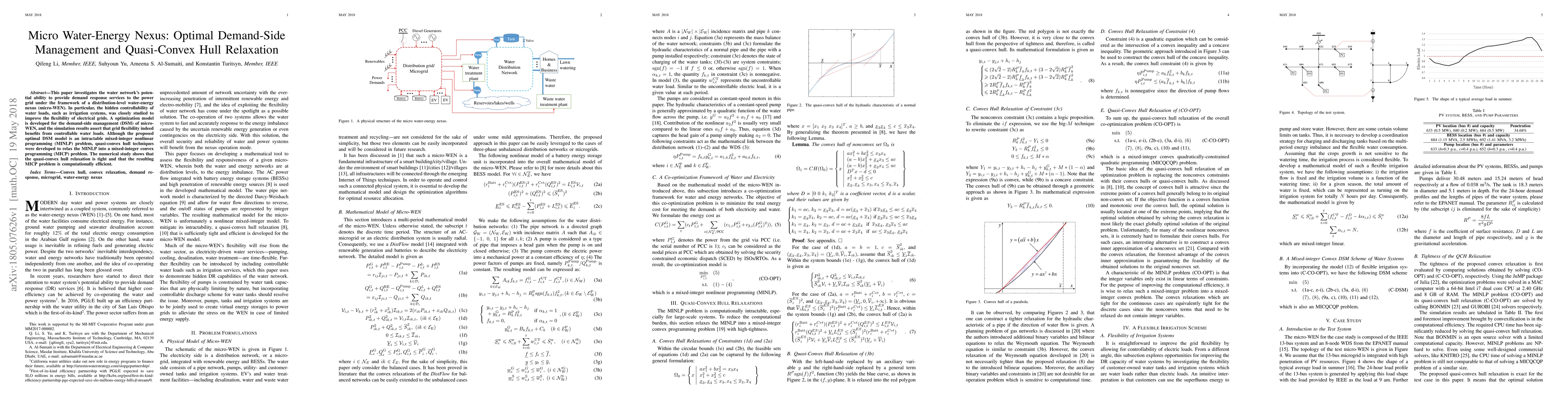 This paper develops an optimization model for managing demand-side water loads to enhance grid flexibility within a micro-water-energy nexus framework. It employs quasi-convex hull relaxation techniques to solve the intractable mixed-integer nonlinear programming problem, demonstrating improved computational efficiency and effectiveness.