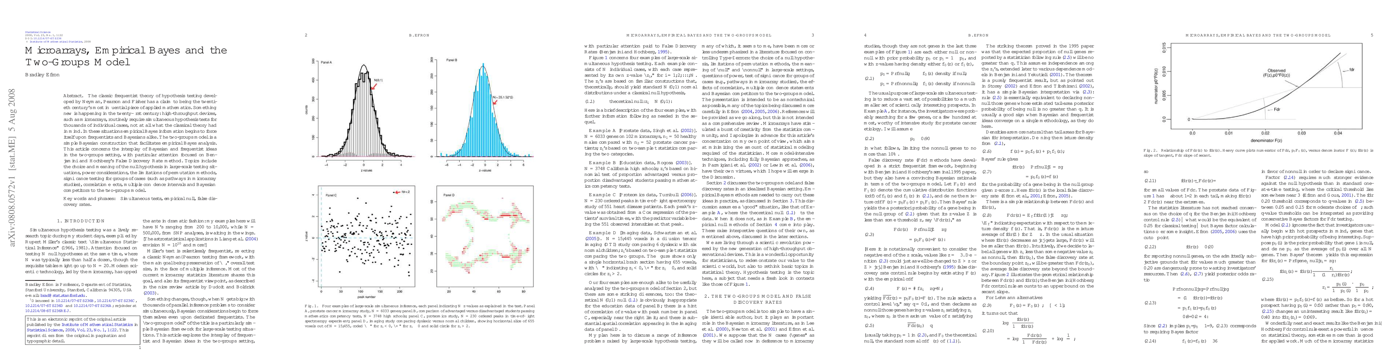 This paper explores the application of empirical Bayes methods to high-throughput data analysis, particularly in the context of microarrays. It examines the two-groups model for simultaneous hypothesis testing, focusing on the interplay between Bayesian and frequentist approaches, including the False Discovery Rate method.