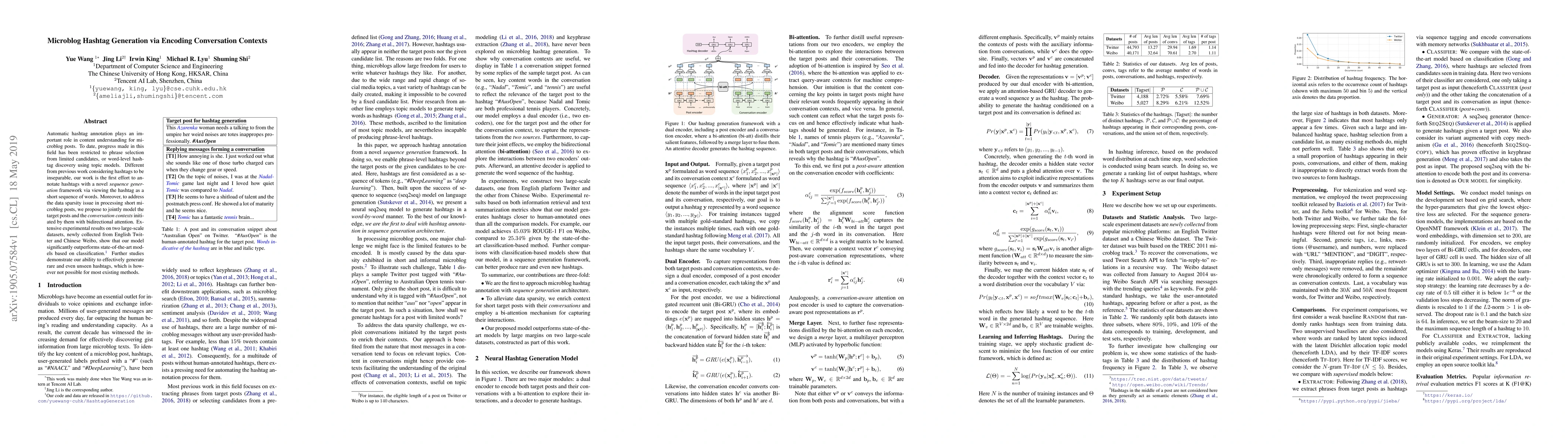 Researchers develop a novel method for automatically generating microblog hashtags using a sequence generation framework that considers hashtags as short sequences of words. Their model outperforms existing methods in generating rare and unseen hashtags.