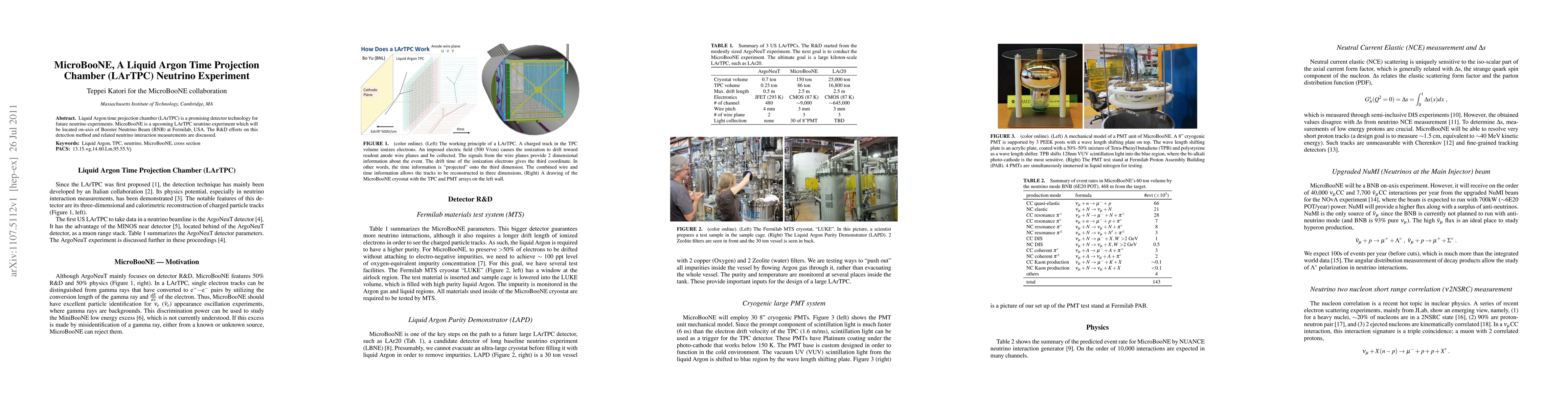 MicroBooNE is a Liquid Argon Time Projection Chamber (LArTPC) experiment at Fermilab, designed to advance detection technology for neutrino experiments and measure neutrino interactions. The paper discusses ongoing research and development efforts for this innovative detector.