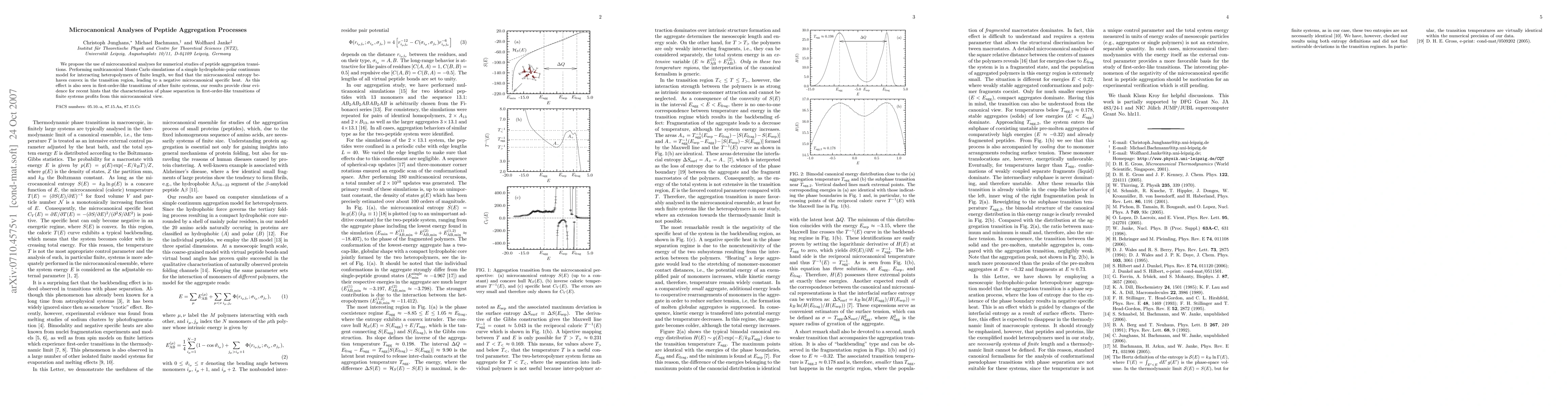 This paper employs microcanonical analyses and multicanonical Monte Carlo simulations to study peptide aggregation transitions. The findings reveal a convex microcanonical entropy in the transition region, resulting in a negative microcanonical specific heat, supporting the utility of microcanonical views for characterizing first-order-like transitions in finite systems.