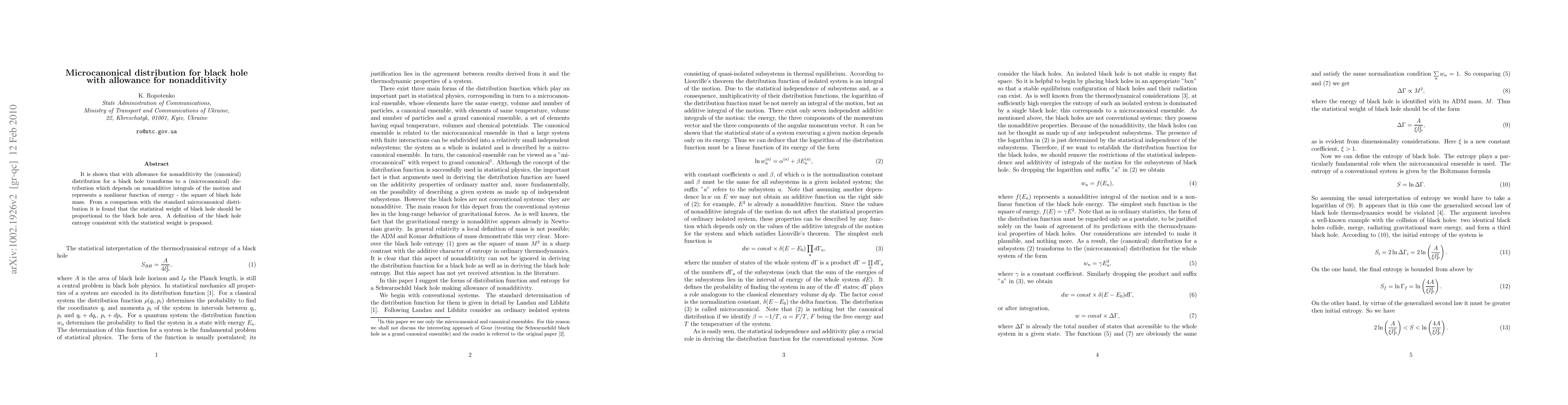 A new distribution for black holes is proposed, based on nonadditivity, which depends on energy and relates to the square of mass, suggesting a relationship between entropy and area.