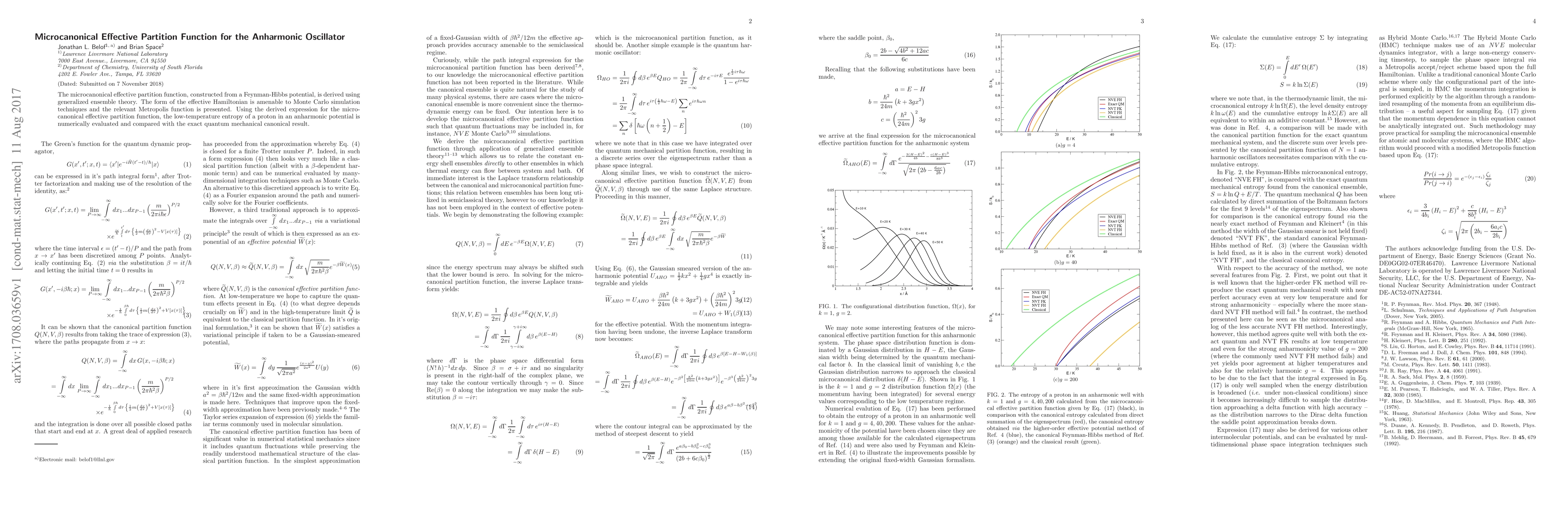 Researchers derived a microcanonical effective partition function for an anharmonic oscillator using generalized ensemble theory, enabling numerical evaluation of low-temperature entropy and comparison with exact quantum mechanical results.