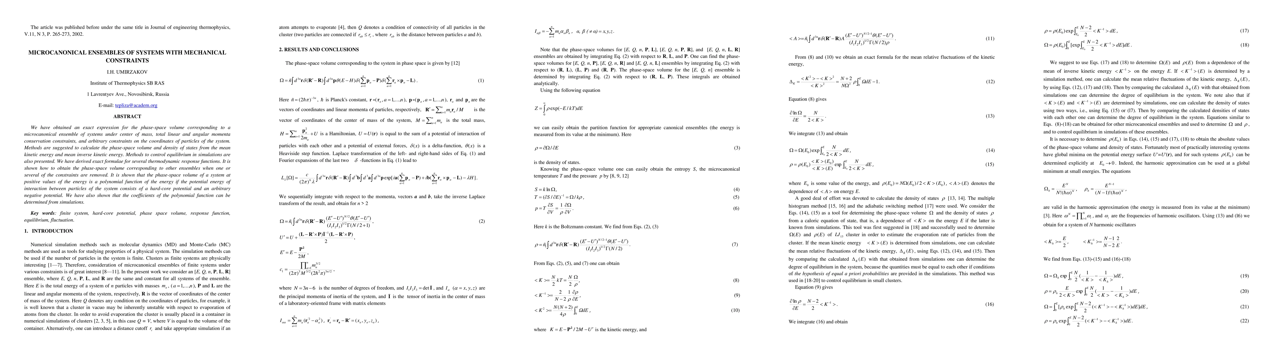This paper presents an exact expression for the phase-space volume of microcanonical ensembles under various mechanical constraints, including center of mass, linear and angular momenta conservation. It also provides methods to calculate phase-space volume and density of states from kinetic energy metrics and discusses techniques for controlling equilibrium in simulations.